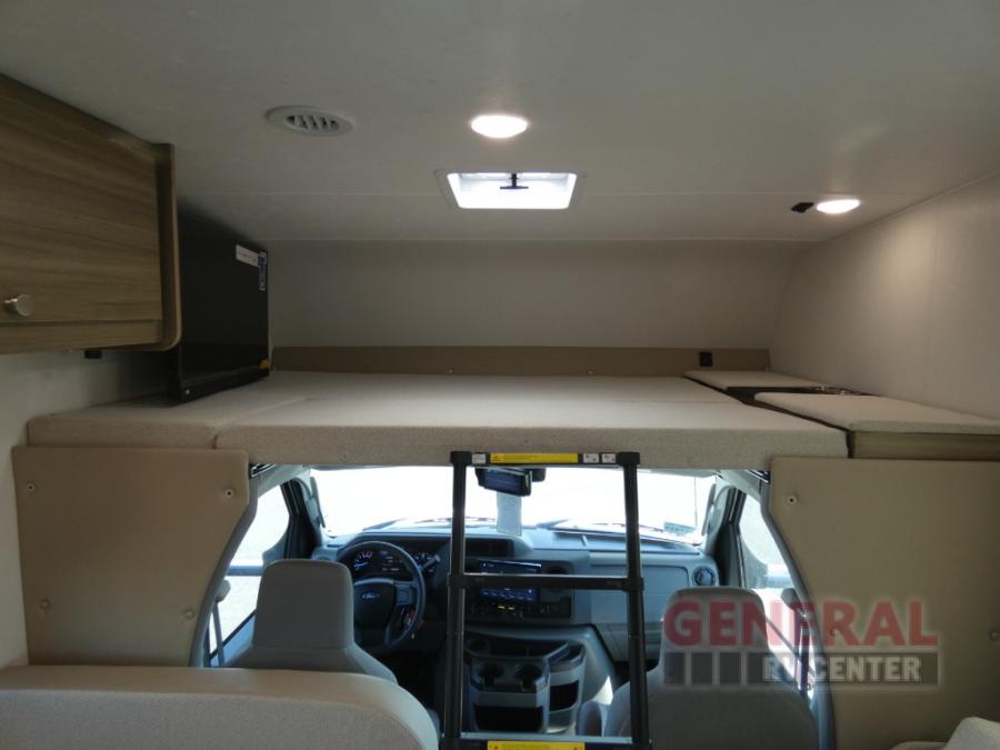 Sneak off for a getaway in this motorhome that has everything you might need! The private rear bedroom has a 60” x 80” queen bed with storage on either side and plenty of room to walk around. The bathroom is split with the shower on one side and the sink and toilet behind a separate door so sharing is a breeze. Relax up front on either the sofa or the roomy 42” x 71” dinette with cabinets above for all your supplies. A bunk over the cab provides yet another sleeping area that will be popular with little ones. Time to get out there in the Freelander!