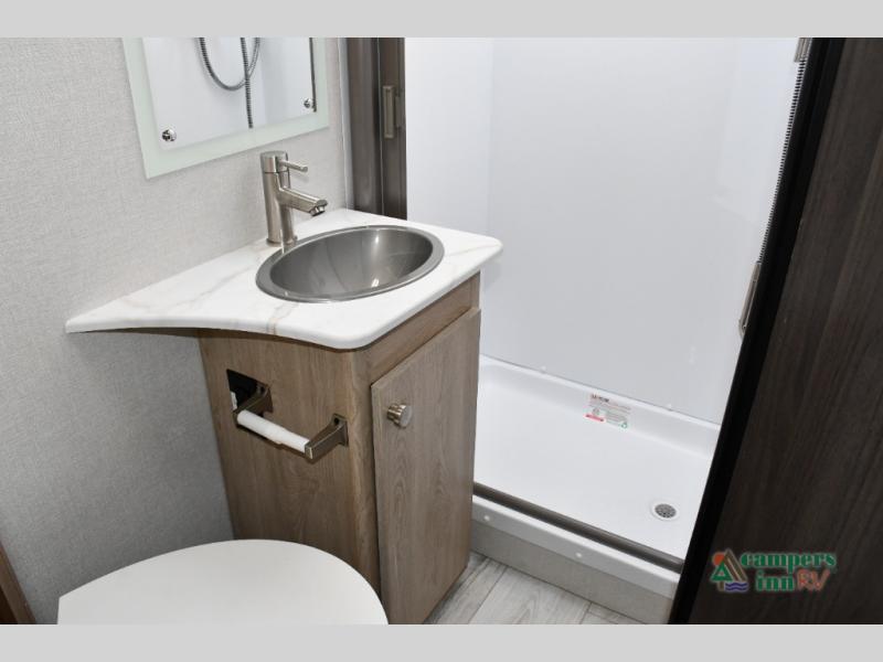 Includes a separate shower, toilet, and sink—complete privacy and function.