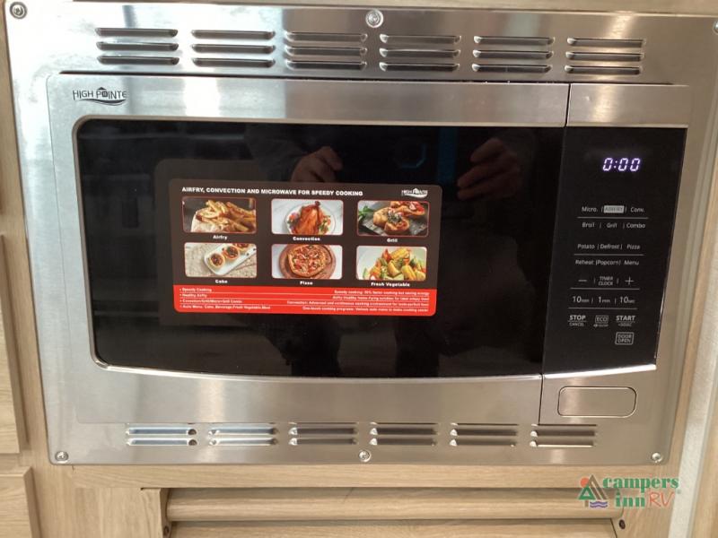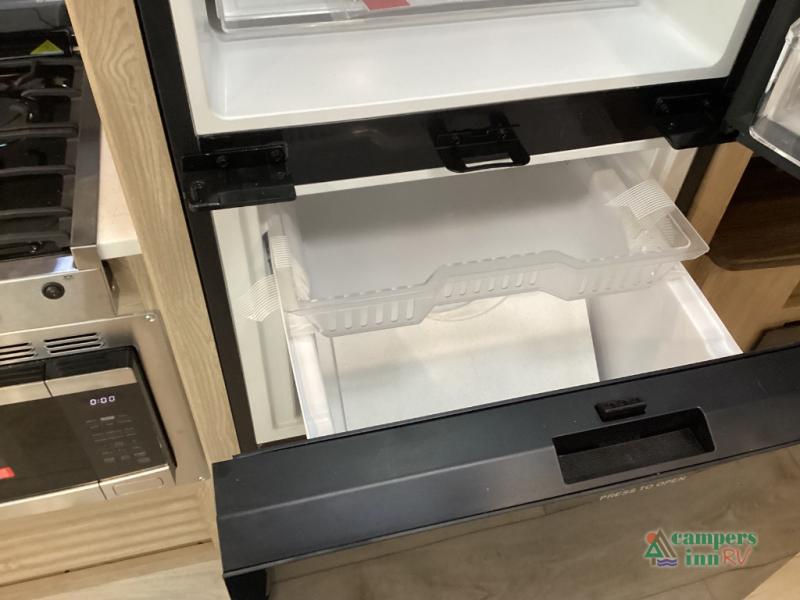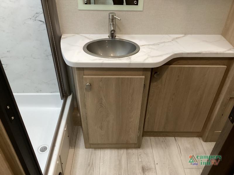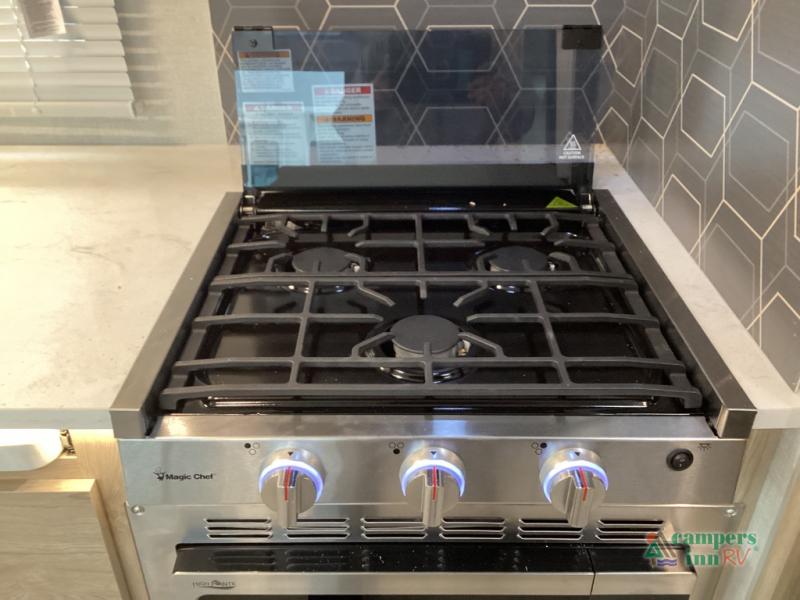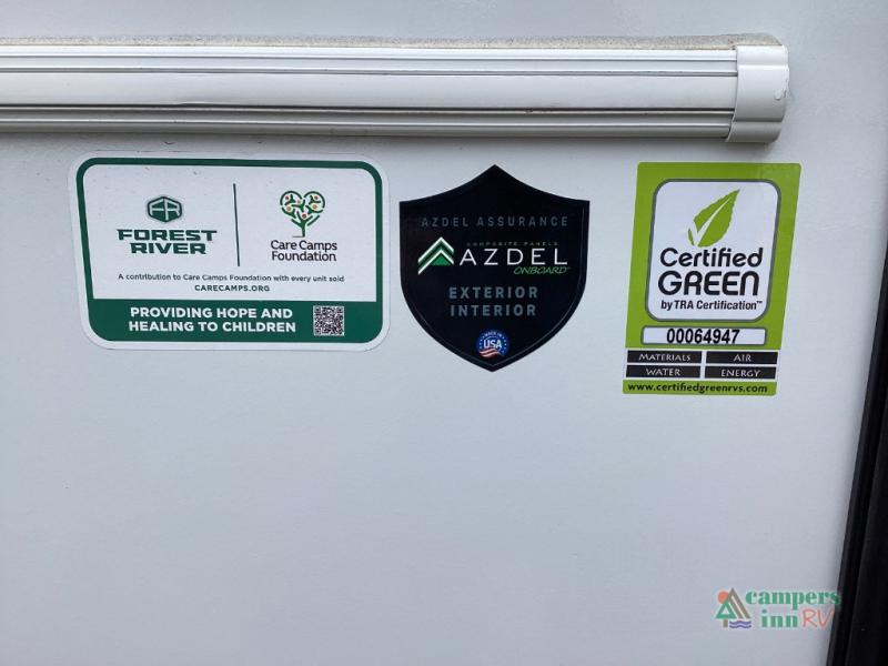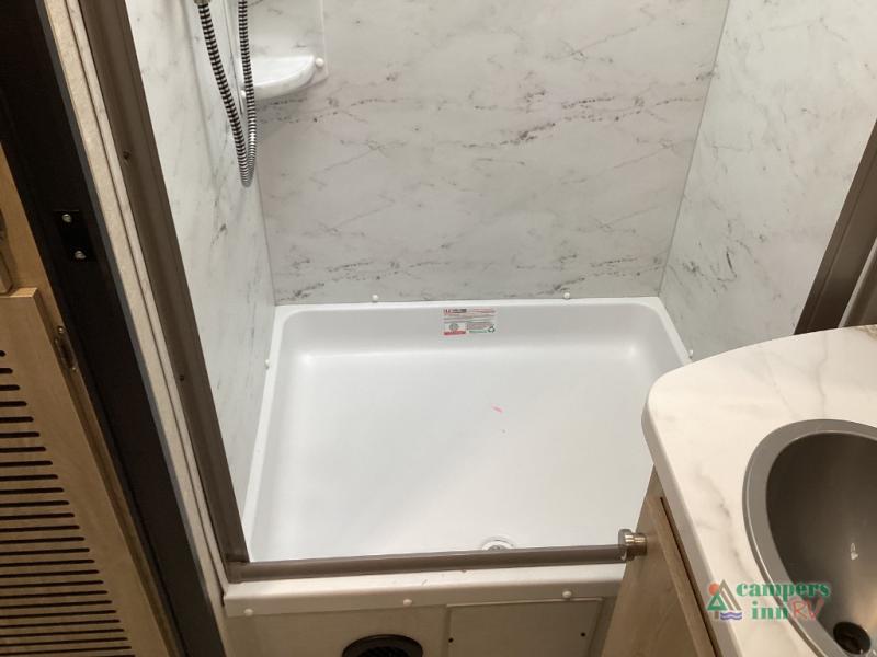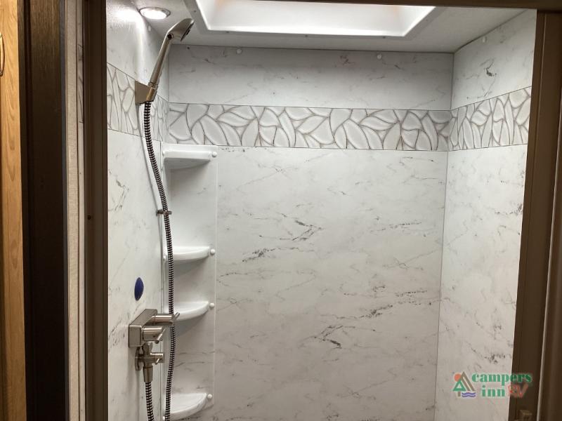 Oversized windows with blackout shades provide great views while keeping the interior cool and private.