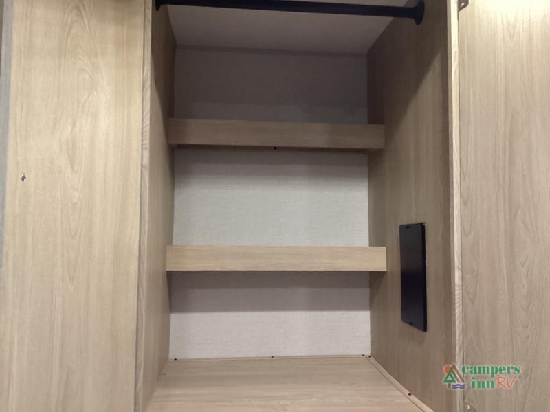 Wardrobe storage and overhead cabinets for all your clothes and accessories.