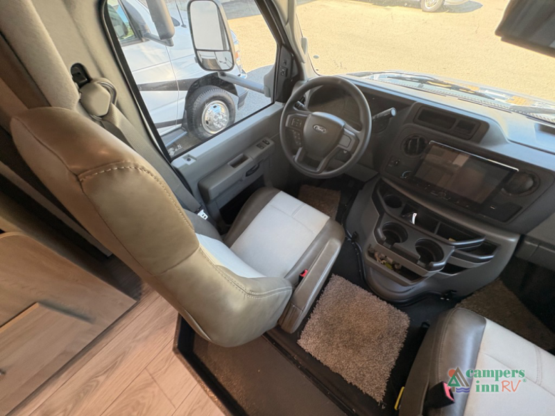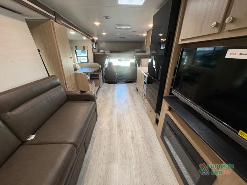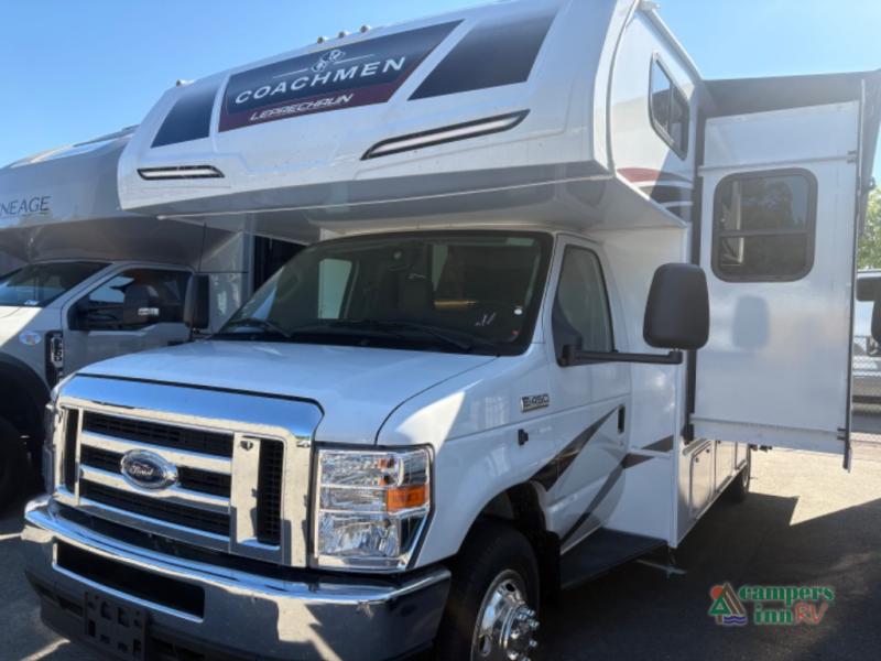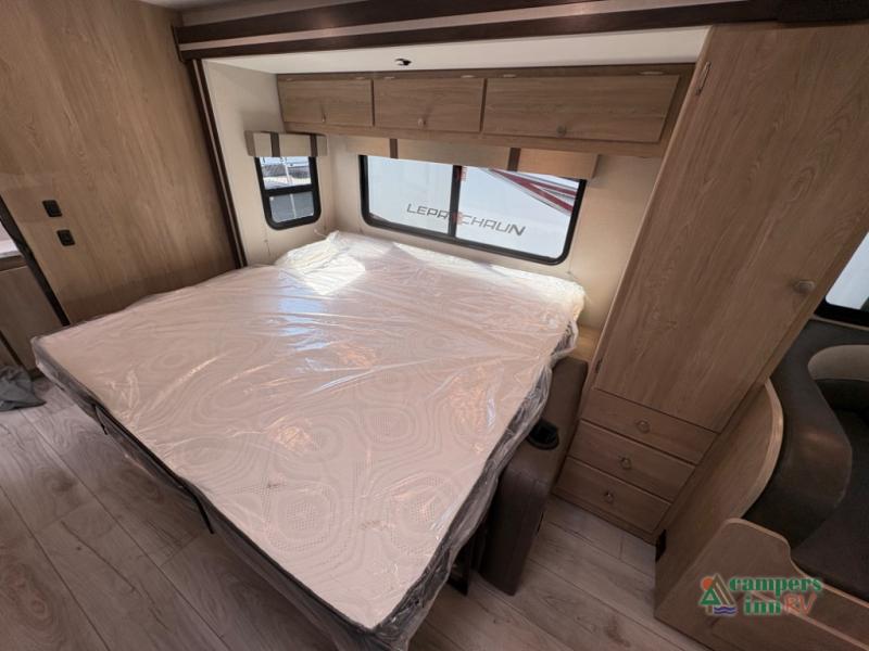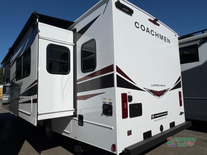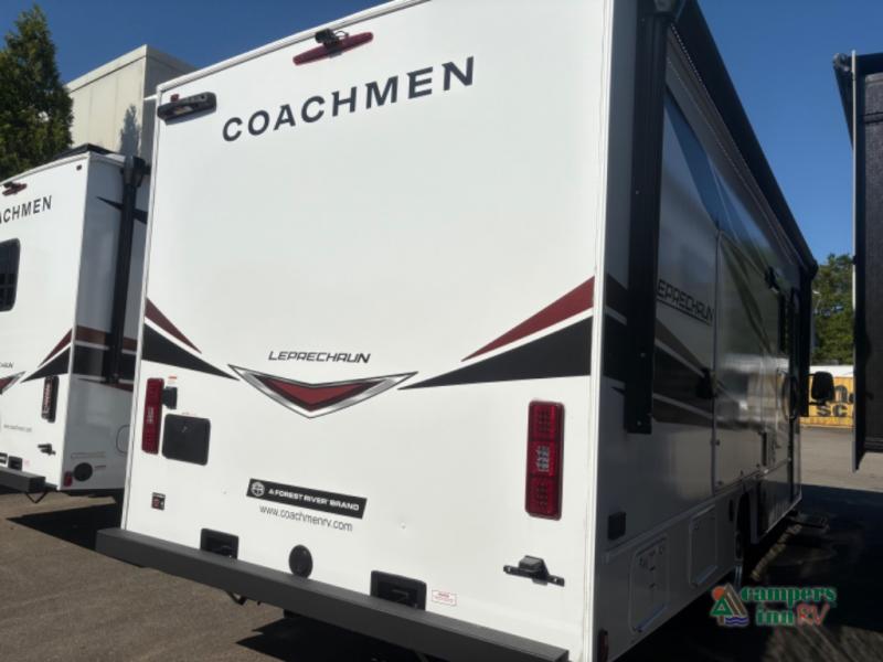 With each Leprechaun Class C gas motorhome by Coachmen you will enjoy "better" interior appointments, like the residential-sized beds, on-demand tankless water heater, and 15,000 BTU A/C. A dash radio and a backup monitor will let you easily navigate the open road like pro. There are also pleated night shades inside, along with premium vinyl flooring, a shower skylight, and USB charging ports to name a few comforts and conveniences. The Leprechaun is constructed with composite sidewall and cabover floor construction plus a seamless one-piece roof material for a durable motorhome made to last.