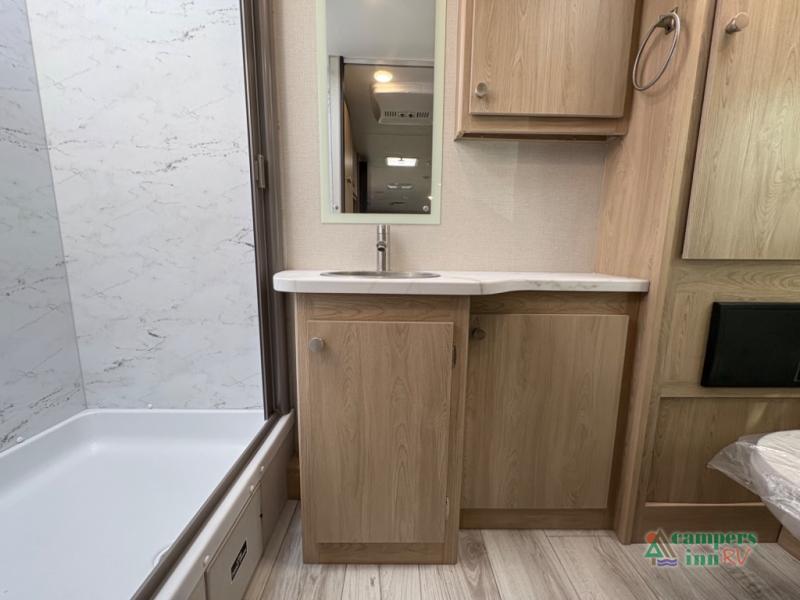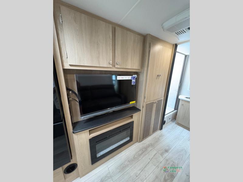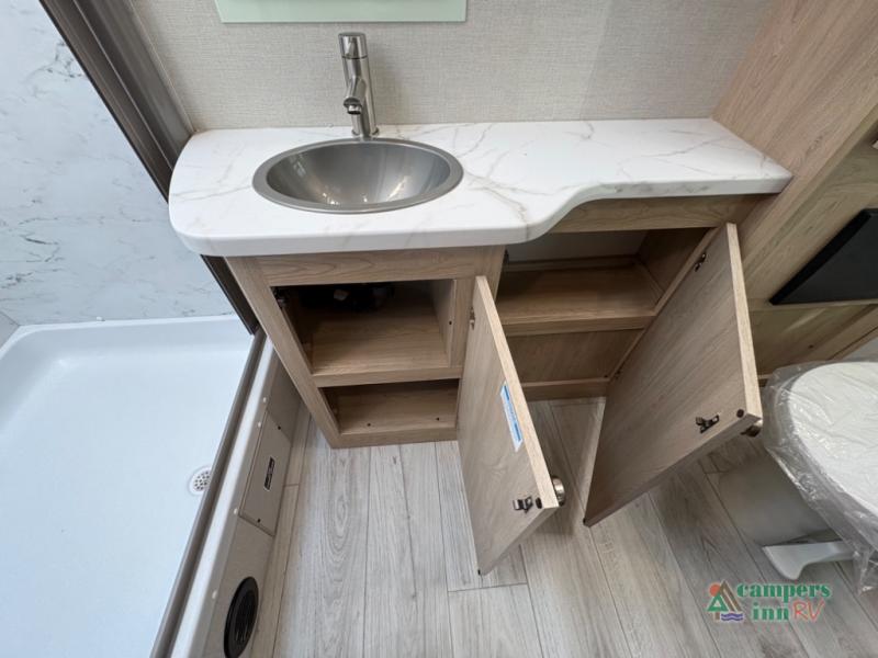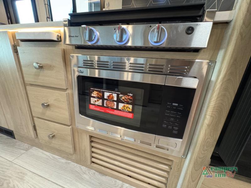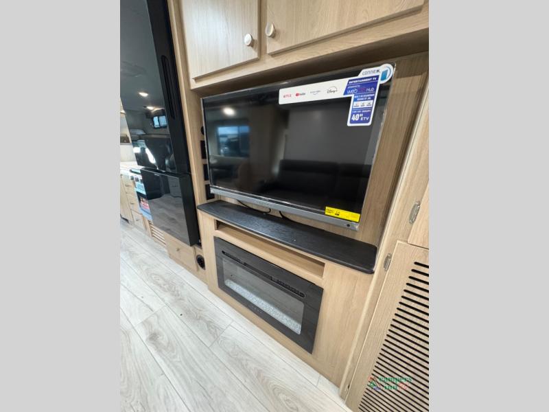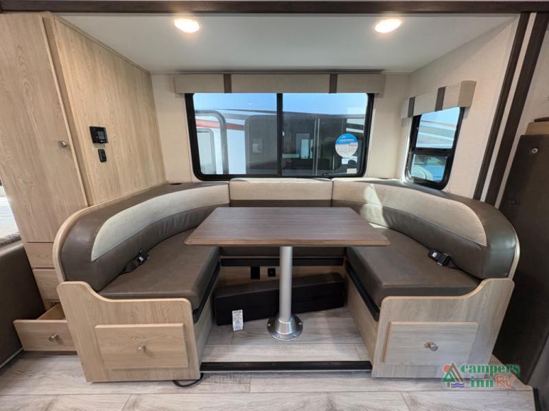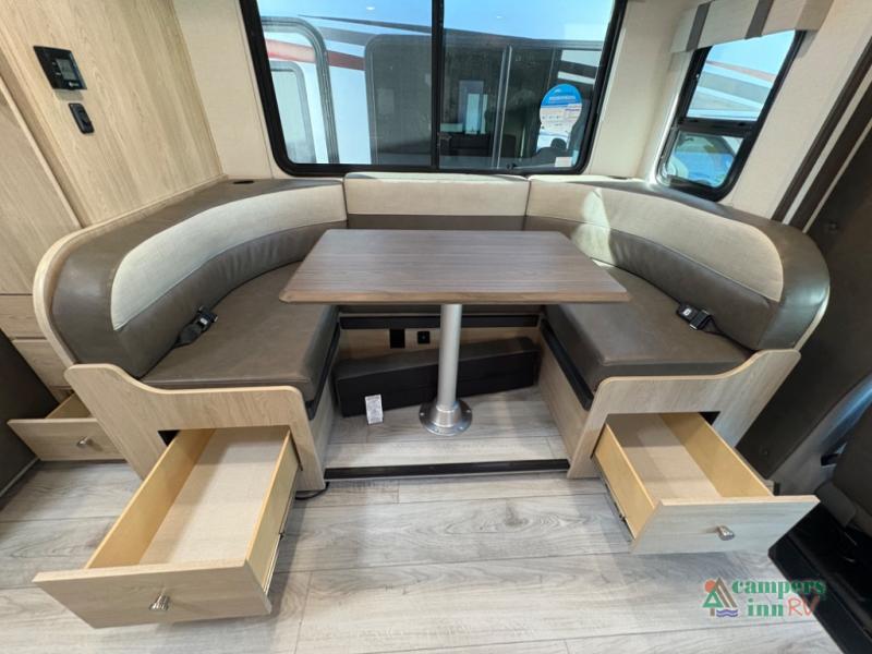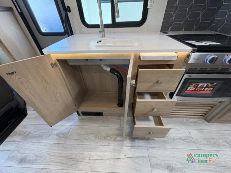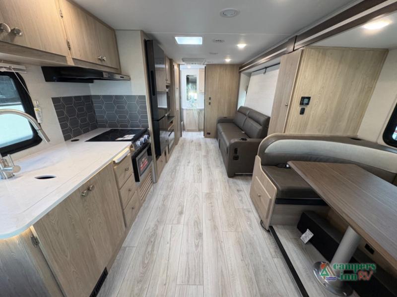 Your small family will love traveling in this motorhome! This coach is filled with exceptionally helpful amenities, like the pull-out extension in the kitchen, the 44" x 82" U-shaped dinette, the full bathroom with a 30" x 36" shower, and the optional fireplace. The chef will have an easy time cooking in the fully equipped kitchen, but also love cooking at the outside kitchen, plus there is outside storage for all of your gear and an optional outside TV for entertainment. You will get a good night's rest each night on the 72" x 74" king Murphy bed and the kiddos can sleep on the 57" x 80" bunk over cab!