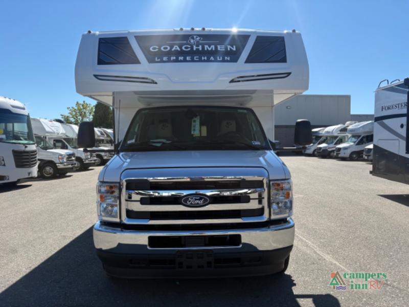 With each Leprechaun Class C gas motorhome by Coachmen you will enjoy "better" interior appointments, like the residential-sized beds, on-demand tankless water heater, and 15,000 BTU A/C. A dash radio and a backup monitor will let you easily navigate the open road like pro. There are also pleated night shades inside, along with premium vinyl flooring, a shower skylight, and USB charging ports to name a few comforts and conveniences. The Leprechaun is constructed with composite sidewall and cabover floor construction plus a seamless one-piece roof material for a durable motorhome made to last.