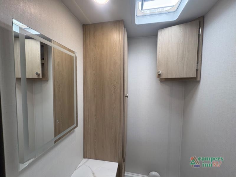 Have you been looking for privacy when sleeping and getting dressed in your next coach? This Leprechaun Class C gas motorhome offers a private rear bedroom with a walk-around queen bed, a bunk over the cab for the kids, and furniture that doubles as sleeping accommodations for guests. The private toilet and sink with the shower just across the hall allow two people to freshen up at once. Your family will love having a sofa and a booth dinette for relaxing, eating meals, playing games, or enjoying one another's company throughout your trip.