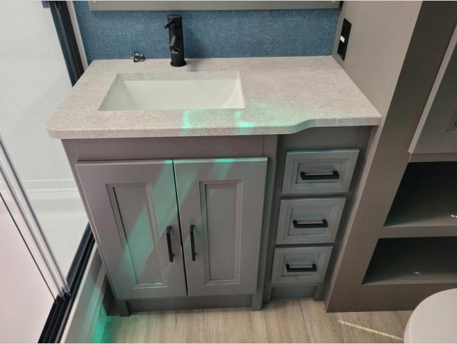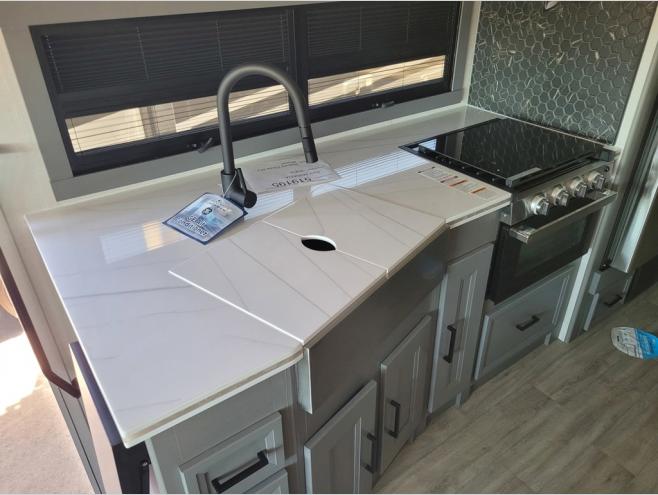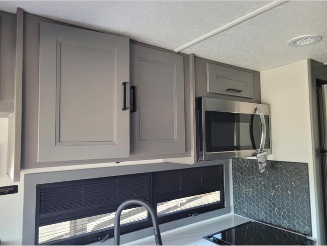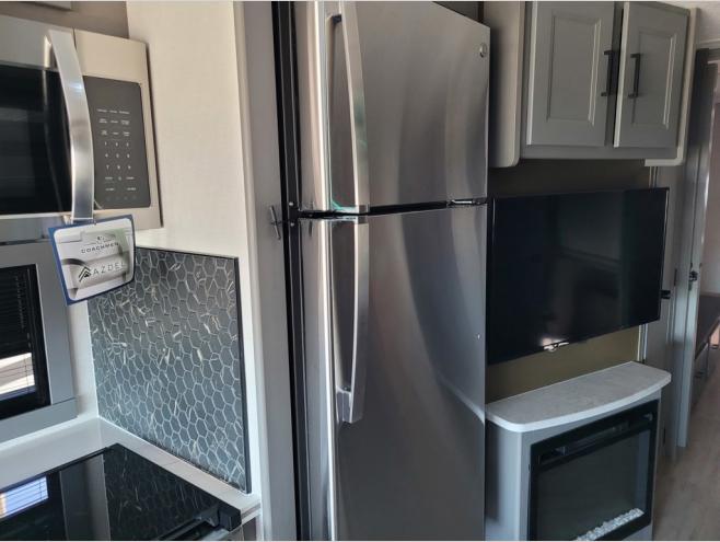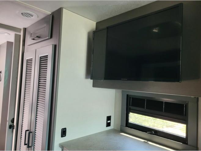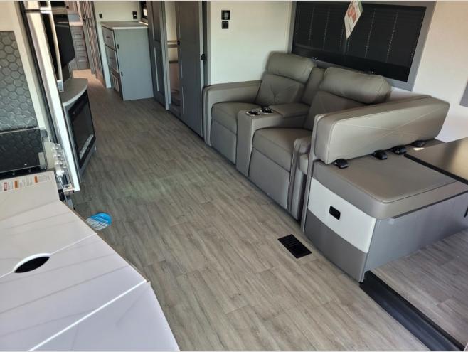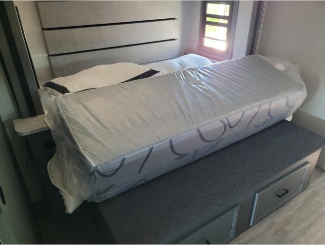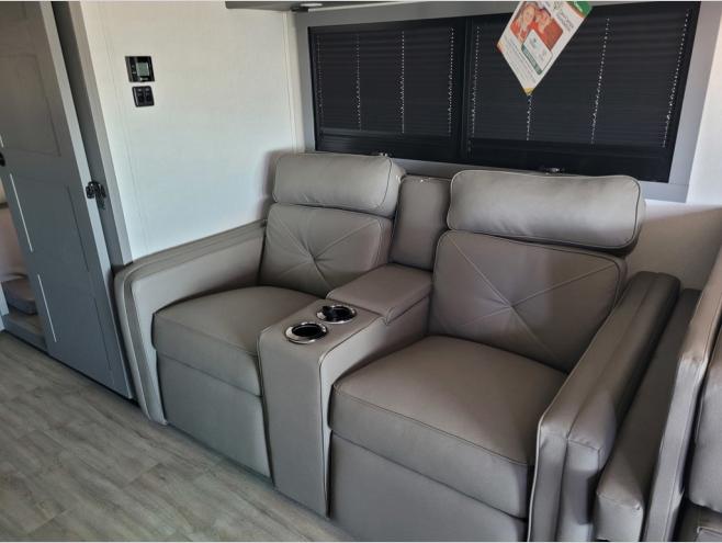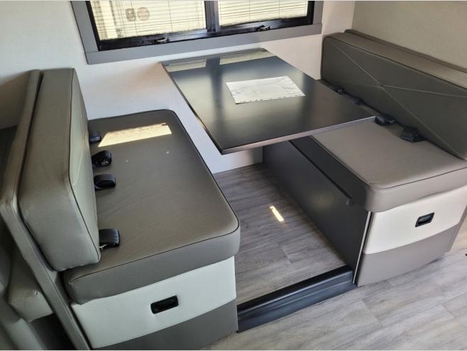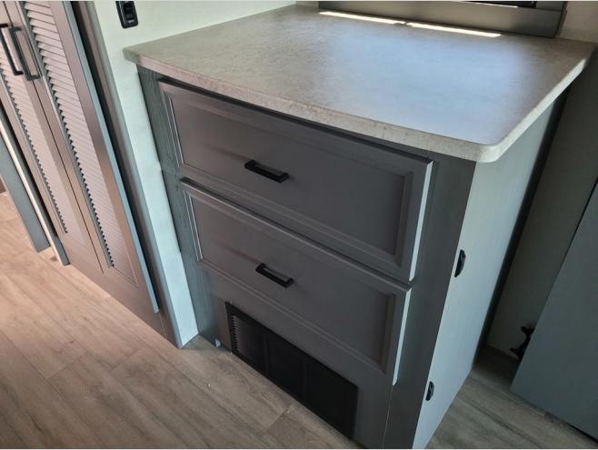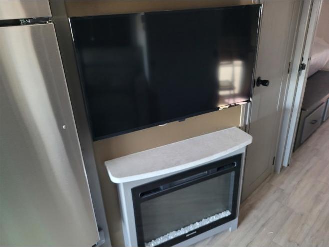 How convenient is it to have a bath and a half on board when traveling with friends and family?! The bunk beds can easily be used as a wardrobe or office if you don't need the additional sleeping space, and you'll still have the overhead bunk up front. While the chef is preparing dinner on the three burner range, everyone else can visit on the sofa bed and booth dinette, and the fireplace here will make it feel more like home. The private bedroom suite features a king bed slide out, a dresser, plus a wardrobe with washer and dryer prep for added convenience. Don't let this coach slip away!