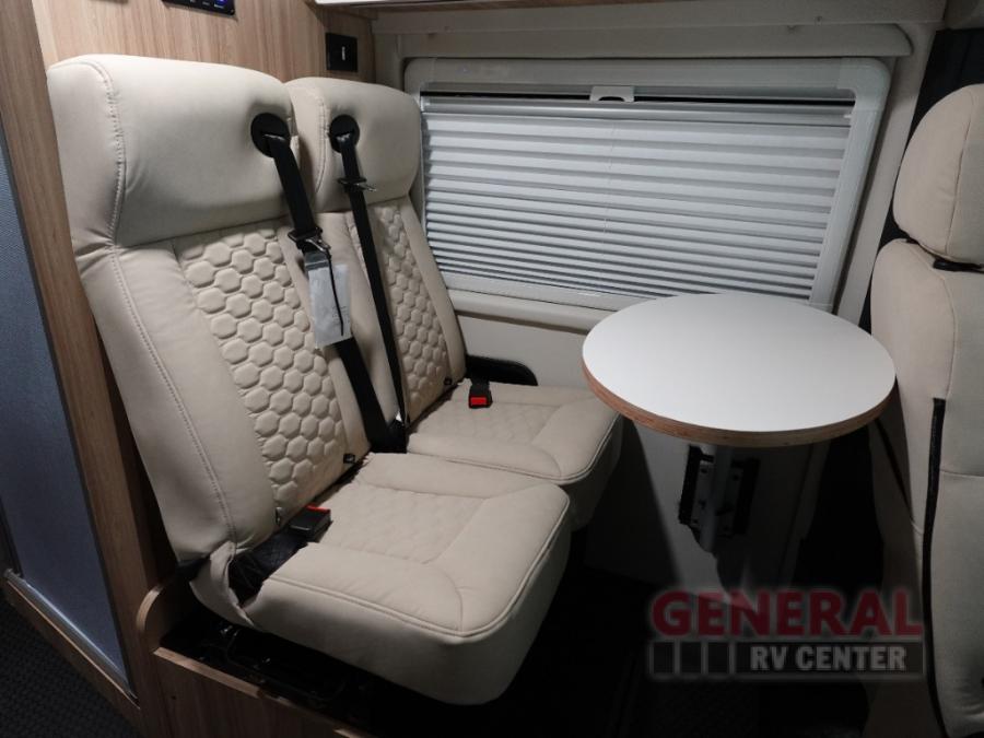 Start a new adventure across the states in this cozy coach! Once you arrive at the campground, you can make lunch on the induction cooktop or in the air fryer/convection microwave. There is also a 7.3 cu. ft. refrigerator with a pull-out freezer drawer to keep your food fresh. You'll find multiple overhead cabinets to keep your belongings tucked out of the way, and the compact wet bath will let you freshen up after a day outdoors. Up front, you'll find two captains seats plus two additional cab seats with a removable table and storage boxes. The 56" x 77" Murphy bed provides versatile sleeping space when you're ready to get some shut-eye.
