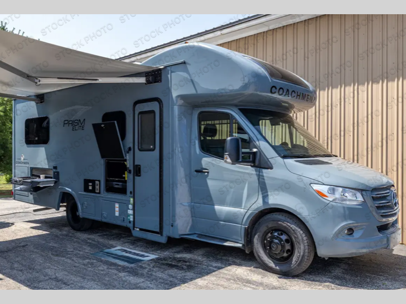 With any of the Prism Elite Class C diesel motorhomes, the Coachmen legacy of upscale luxury with Mercedes-Benz drivability is found throughout. With the aerodynamic and stylish rear fiberglass cap and integrated fiberglass running boards, plus full body paint choices, you are sure to turn heads as you travel to your destination. There are also upgraded MorRyde cargo doors outside, along with an armless awning to enjoy some shade. The interior provides solid surface countertops with lit edge banding, a soft touch ceiling, LED batton strip lights, and Curio glass in the overhead kitchen cabinets. A Truma Aqua Go on-demand water heater will provide endless hot showers, and the 15K BTU low profile A/C will keep you cool all summer long. Choose a reliable and luxurious Prism Elite today!