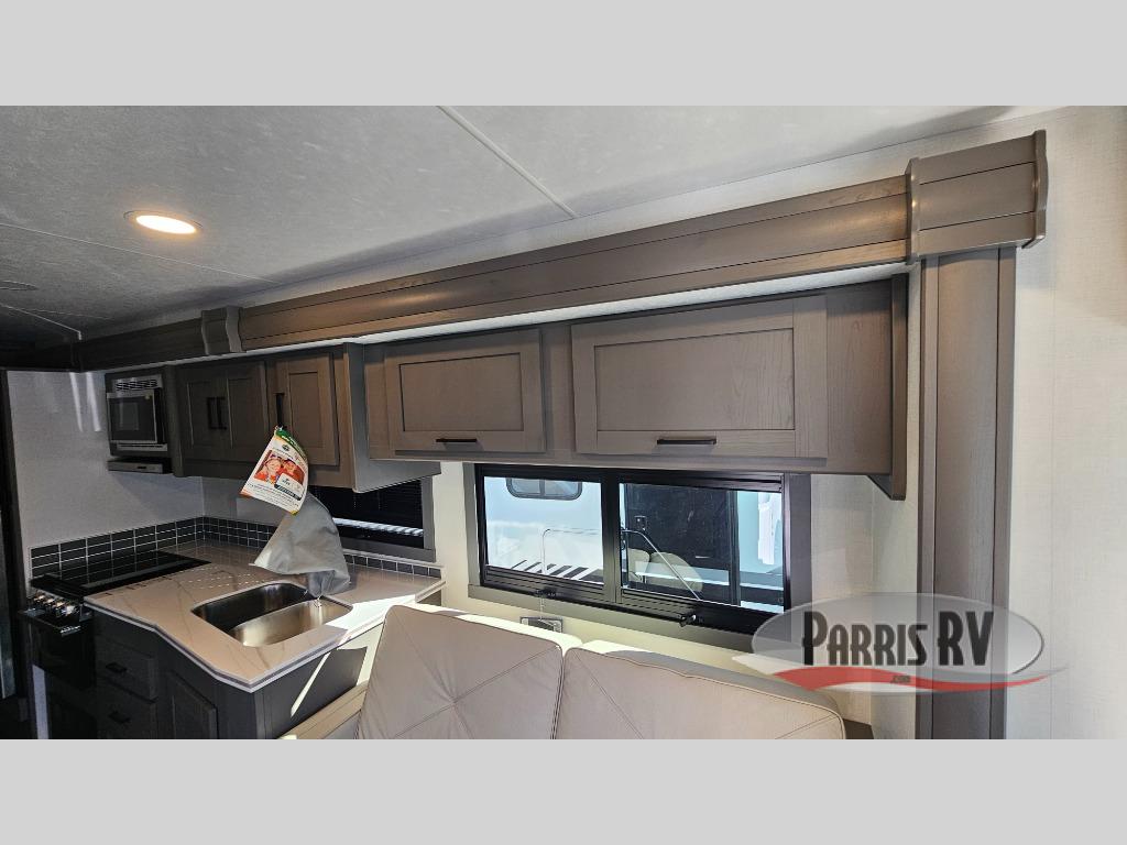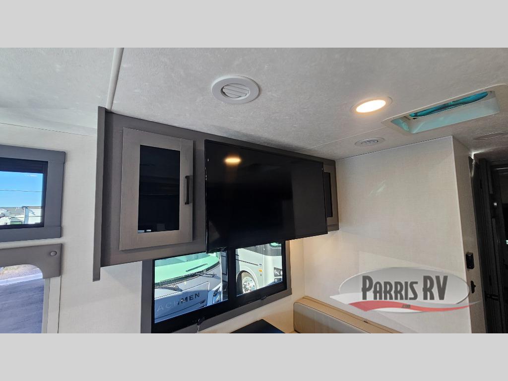 You will be impressed with all that this motorhome has to offer! Starting with the exterior kitchen with a double sink for easy clean-up and the exterior LED TV to stay up to date with the big game as you cook. The rear private bedroom will have you feeling right at home with the 60" x 74" queen bed that has a CPAP station above it and across from wardrobes on either side of the LED TV and storage space. There is a broom closet for your convenience just outside the full bathroom which has a 38" x 24" shower with a skylight for more head room and natural lighting. The fully equipped kitchen has everything you need to prepare your best meals including a stainless steel microwave oven, and you can enjoy them at the 30" x 70" booth dinette. Relax in true comfort on the 63" sofa with storage below for extra games or blanket!