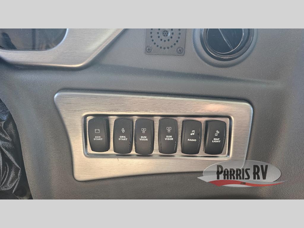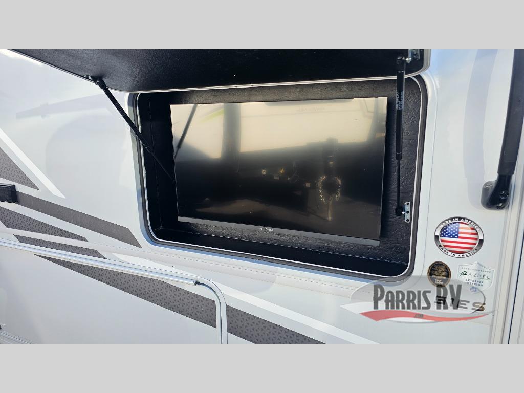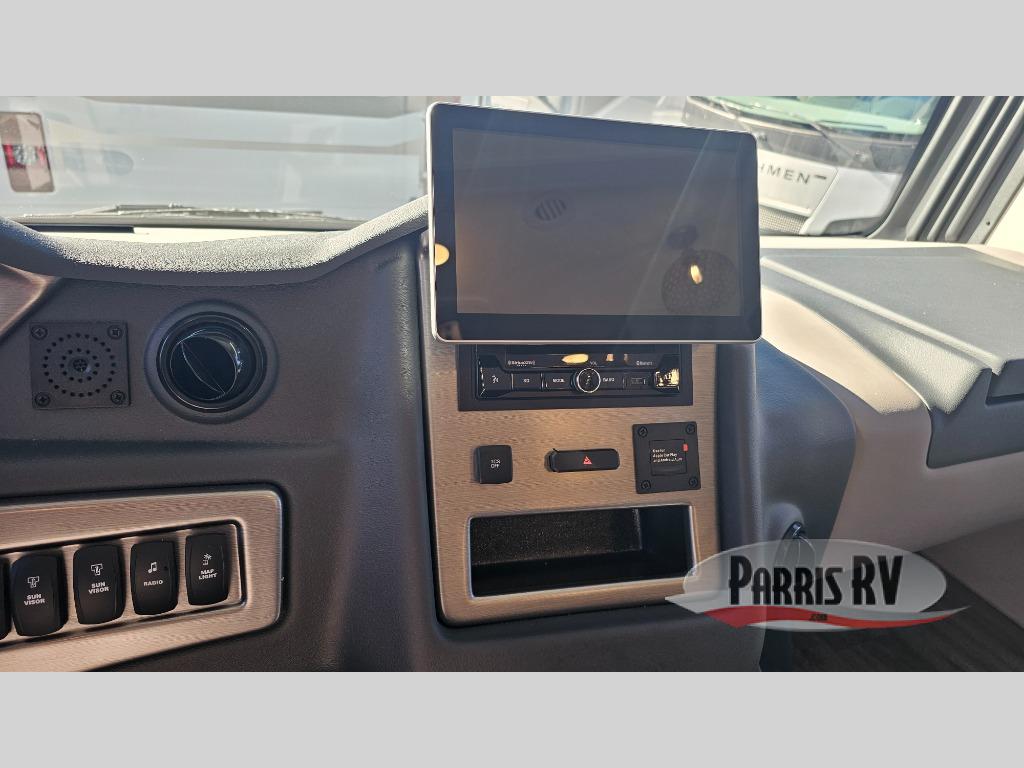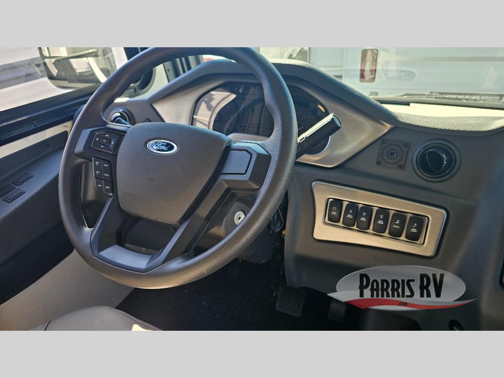The whole gang will love this motorhome thanks to its drop-down overhead bunk, rear private bedroom, and 71" bunk/office/wardrobe space for versatility! Once breakfast has been prepared on the stainless steel three burner range, everyone can dine at the booth dinette or sit on the 63" sofa within the large slide out. There is a 40" LED TV across from the sofa for convenience, and you'll find two additional TVs; one in the bedroom and one outside! This model includes a full bath with a shower skylight, a retractable shower door, and a power bath vent to keep everything fresh. After you've gotten ready for the day, head outdoors to relax under the 17' power awning and watch the big game on the exterior TV!