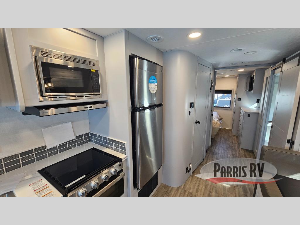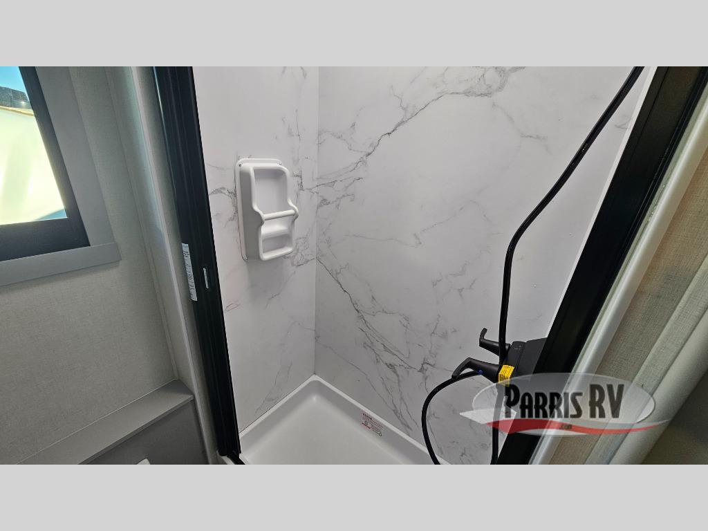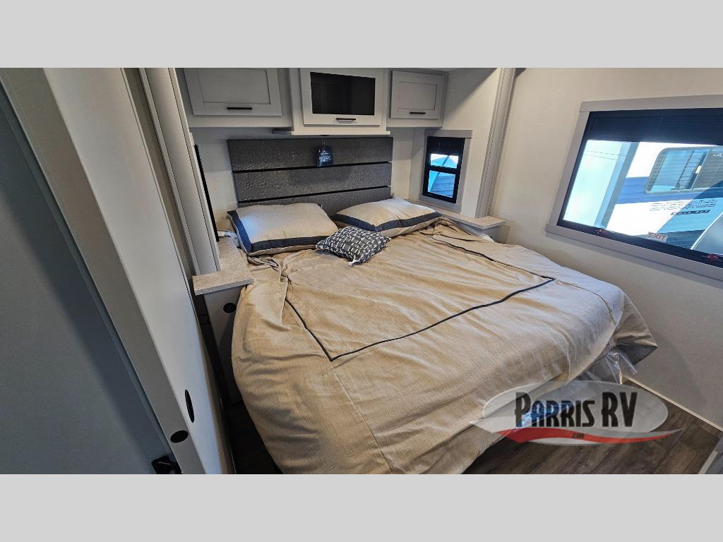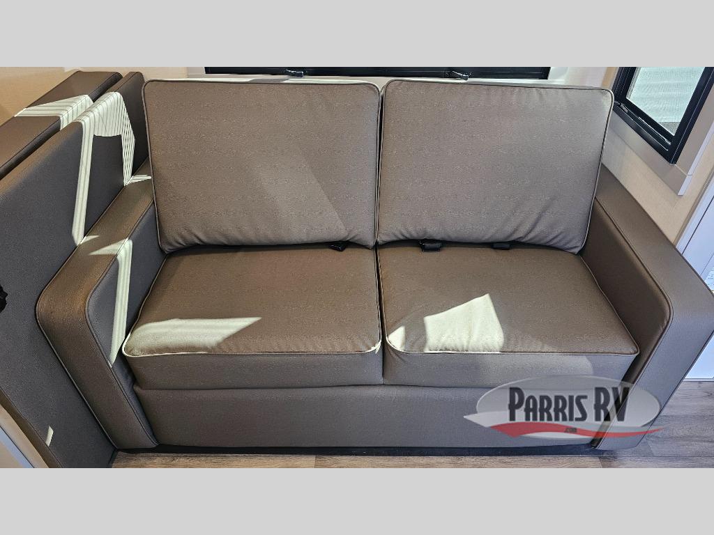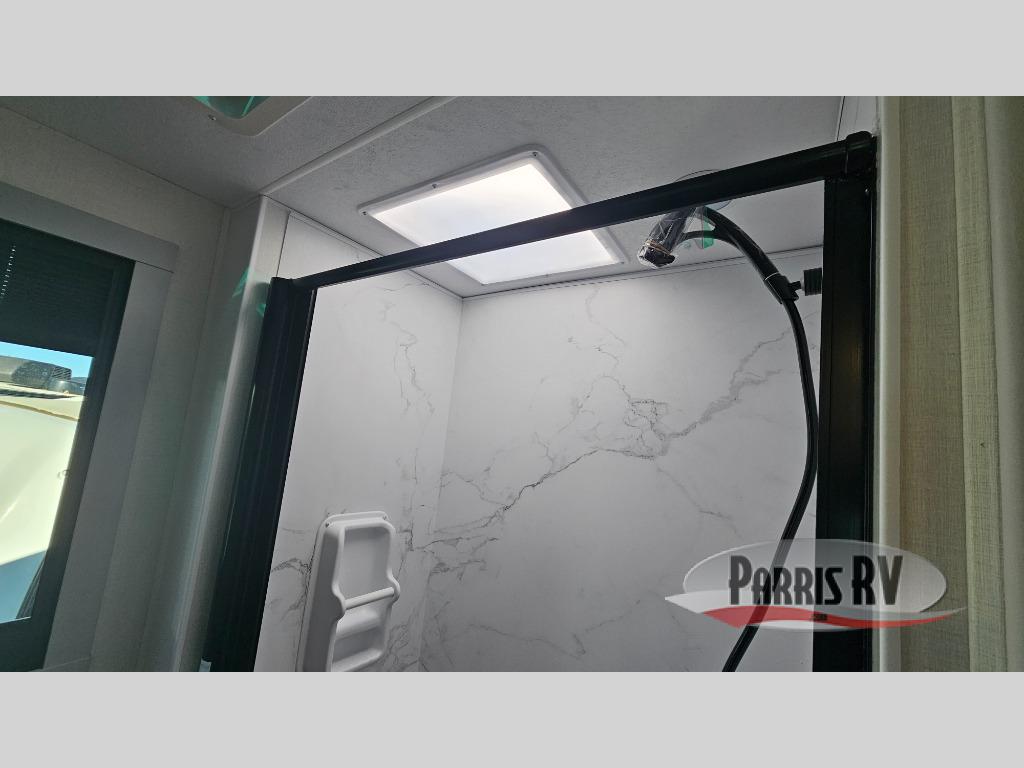 The whole gang will love this motorhome thanks to its drop-down overhead bunk, rear private bedroom, and 71" bunk/office/wardrobe space for versatility! Once breakfast has been prepared on the stainless steel three burner range, everyone can dine at the booth dinette or sit on the 63" sofa within the large slide out. There is a 40" LED TV across from the sofa for convenience, and you'll find two additional TVs; one in the bedroom and one outside! This model includes a full bath with a shower skylight, a retractable shower door, and a power bath vent to keep everything fresh. After you've gotten ready for the day, head outdoors to relax under the 17' power awning and watch the big game on the exterior TV!