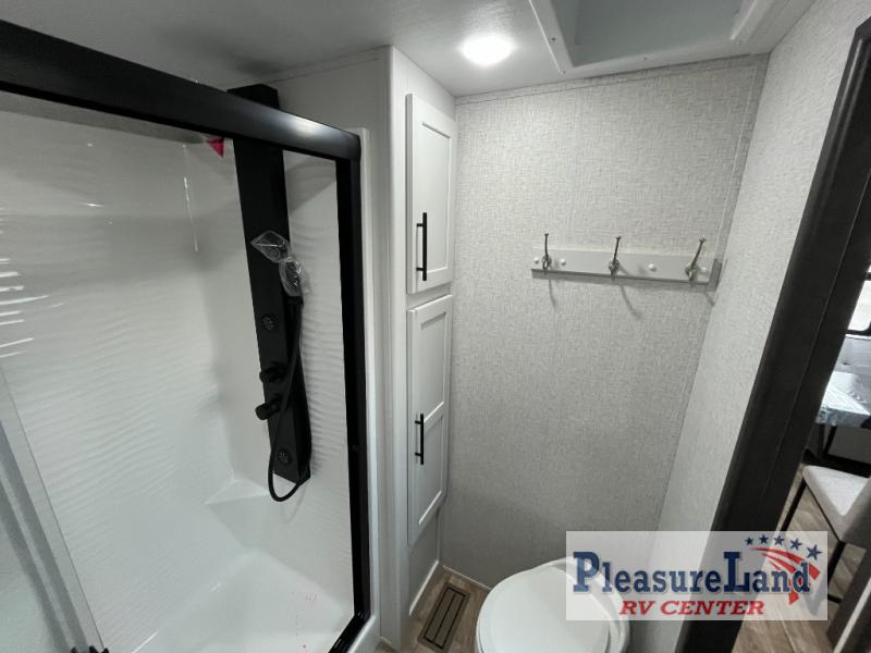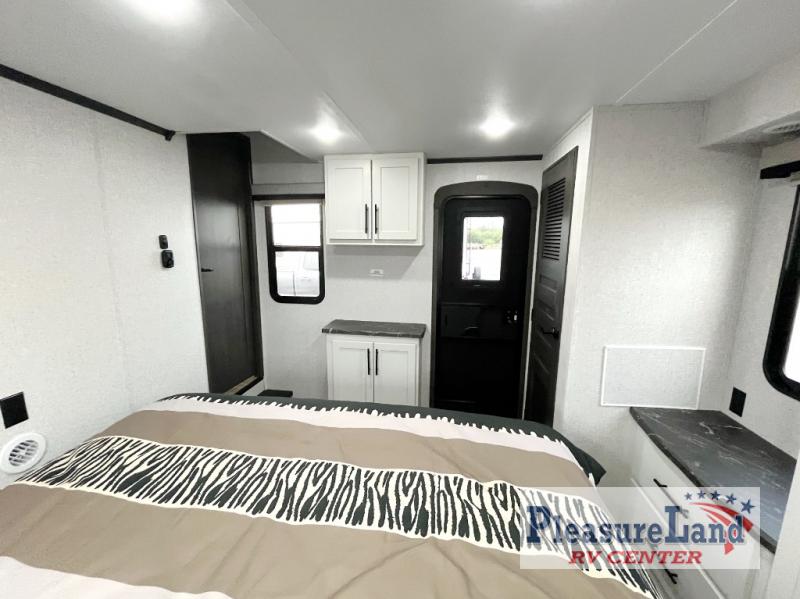 Each Hampton destination trailer by CrossRoads RV includes a one-piece fiberglass front cap, tinted glass windows, and an outside faucet that will surely come in handy when wanting to rinse off your hands or even shoes after exploring outdoors. Each is constructed with a fiberglass roof and floor insulation with radiant tech foil, an enclosed underbelly, and severe weather welded mounts and rain gutters along the entire roof line. And, the Convenience package that comes standard includes KeyTV, a microwave, a quilted bedspread, a power vent in the bathroom, and more. Other interior features offered include decorative accent lighting, a 9-foot floor to ceiling height, a patio door with a swing-out assist rail, and two-toned wood fascia. So choose your destination, select your favorite Hampton, and start feeling at home when you are actually on vacation!