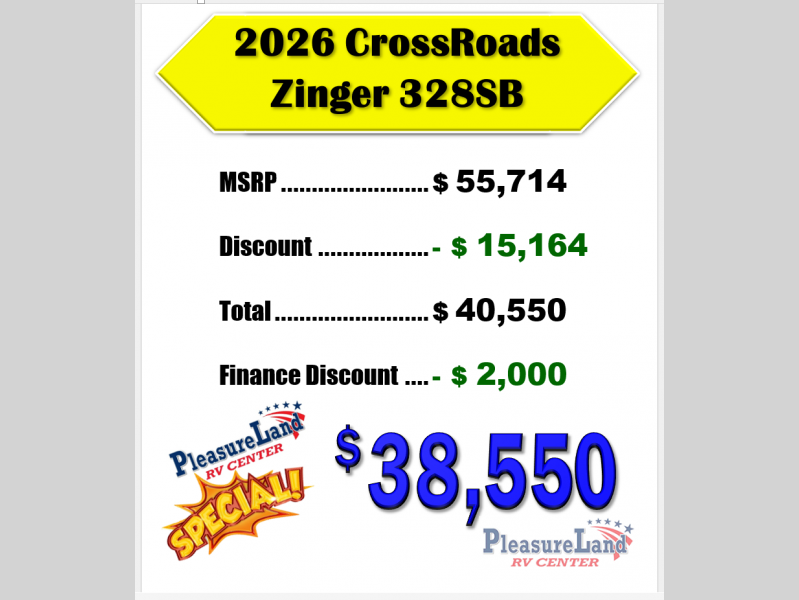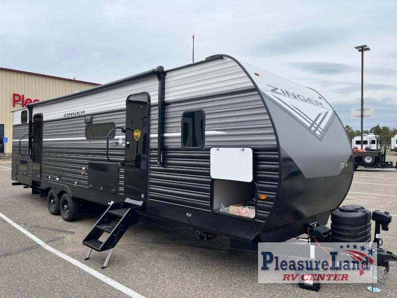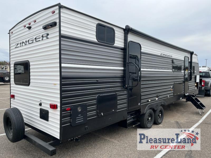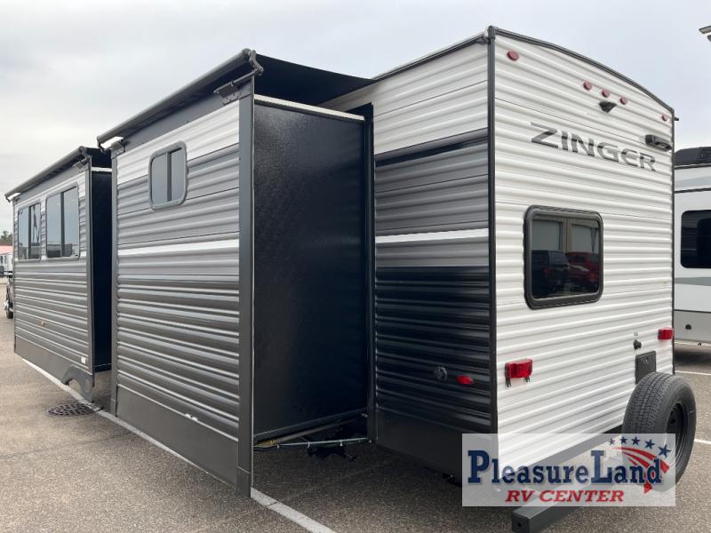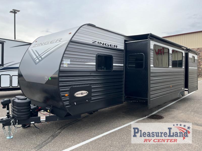 Lead your family to a great vacation getaway in any one of these CrossRoads RV Zinger travel trailers! They feature an aerodynamic front end, Keyed-Alike door locks, Secure Stance entry steps, and exterior speakers with LED accents. The interior of each model includes kitchen backsplash and pressed countertops, along with generous storage, designer valances, and LED lighting to keep your space well lit. You will also appreciate USB ports to keep your electronics charged up, and there is an AM/FM stereo with a Bluetooth soundbar to keep the party going!