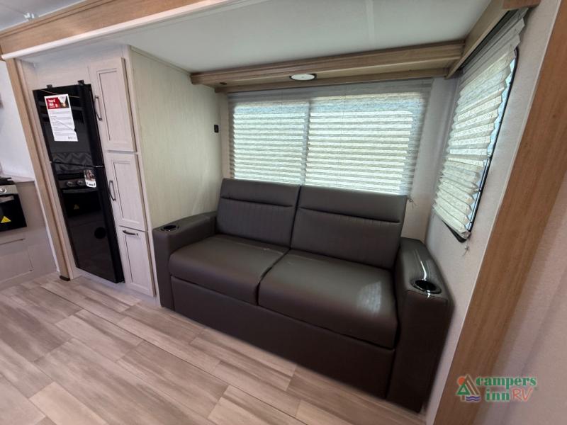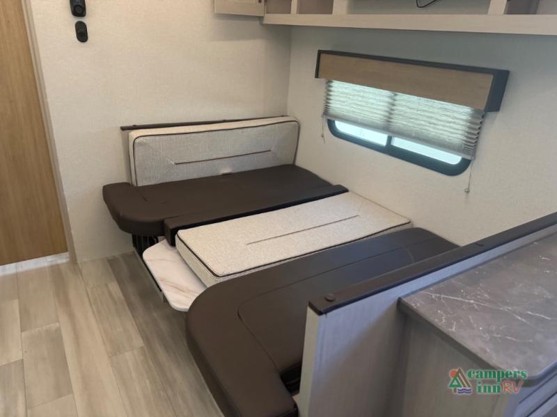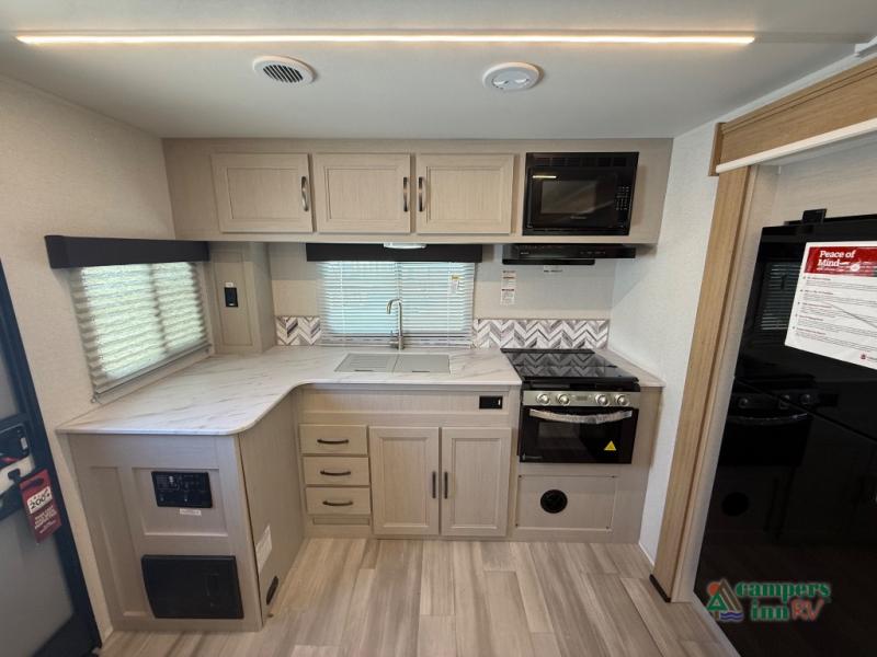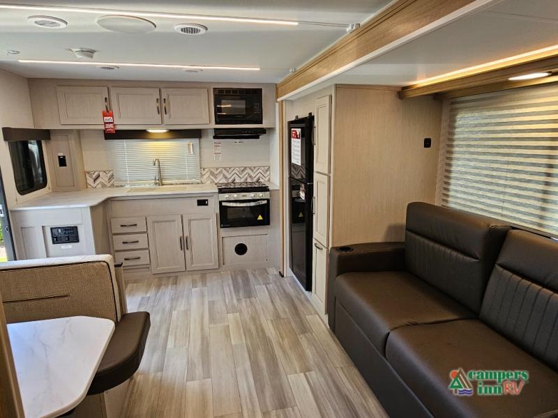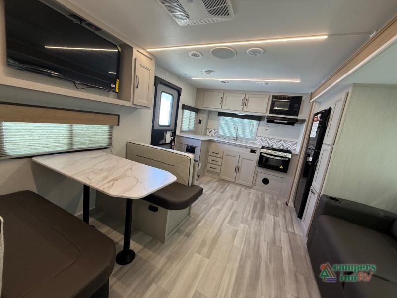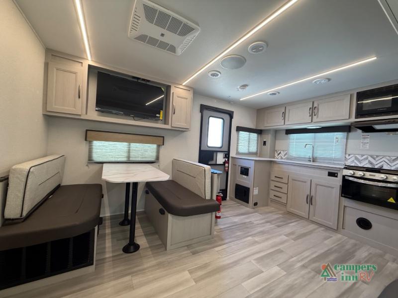 The 2026 Cruiser RV Embrace EL25RK is a perfect blend of comfort, style, and practicality, designed to provide an exceptional RVing experience for couples or small families. This travel trailer features a rear kitchen (RK) layout, allowing for a spacious and open living area with a fully equipped kitchen that includes modern appliances, ample counter space, and plenty of storage. The living room features a cozy sofa and dinette, both of which can be used for relaxing or enjoying meals.