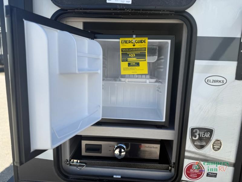 The 2026 Cruiser RV Embrace EL25RK is also built with quality in mind. The exterior includes features like durable construction, easy towing capability, and a power awning to enhance your outdoor experience. It's perfect for those who want the convenience of a smaller, easy-to-tow RV without sacrificing comfort.