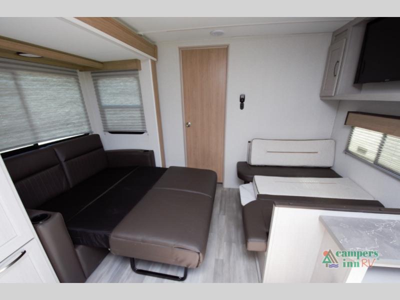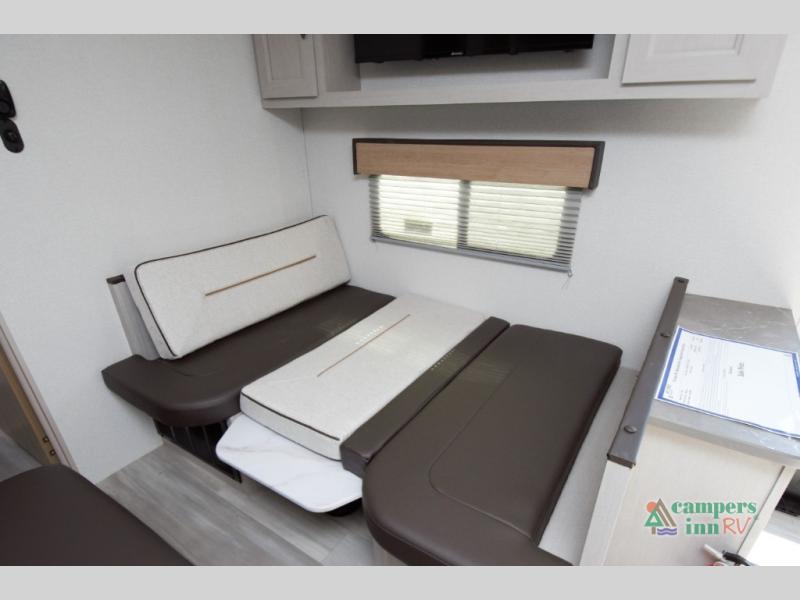 Booth Dinette and Tri-Fold Sofa for dining and sleeping flexibility