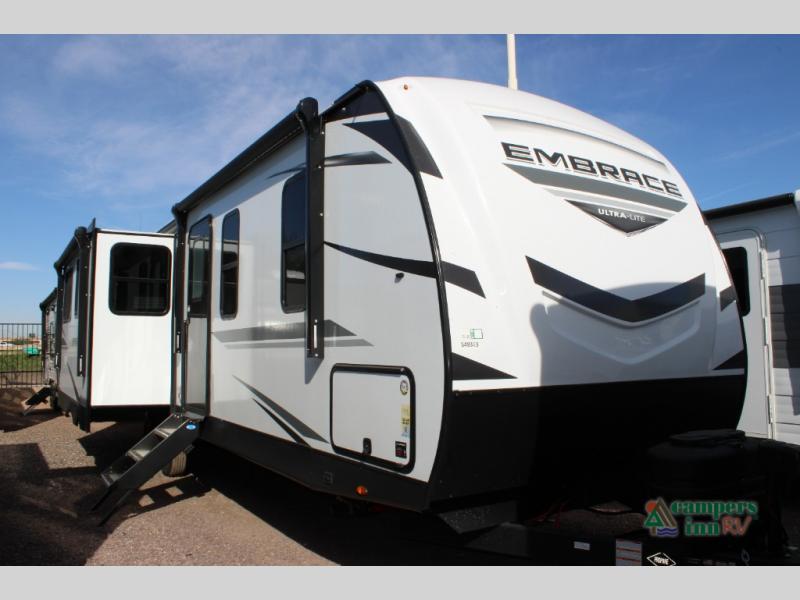 The 2026 Embrace EL30RL is built to last with laminated exterior walls, high-quality insulation, and a one-piece seamless roof. Features like a power awning with LED lighting, stabilizer jacks, and exterior storage compartments make setup fast and hassle-free.