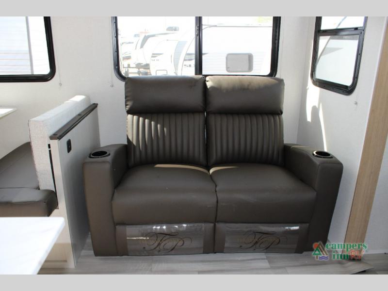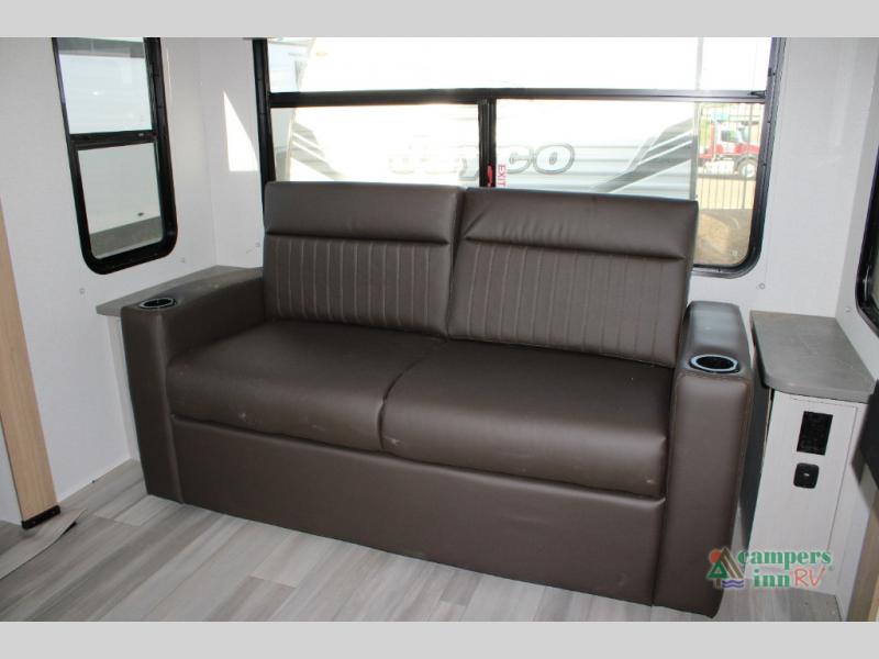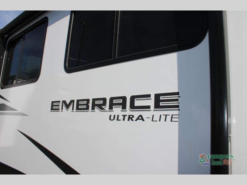 The Embrace EL30RL features a front private bedroom for restful nights, while the rear living area with theater seating and entertainment center provides the perfect space to unwind. The U-shaped dinette converts into extra sleeping space, so the whole family can relax comfortably after a day of adventure.
