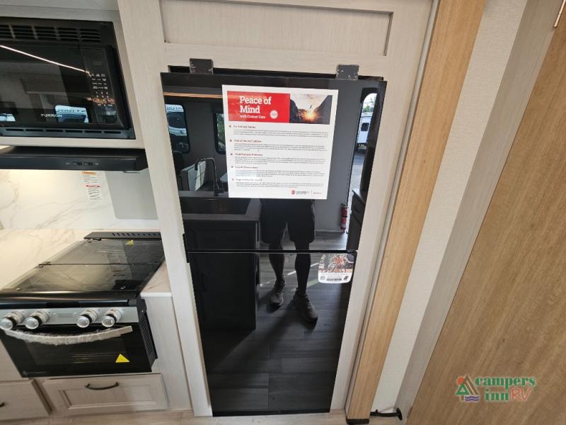- Modern Kitchen for Gourmet Meals – Enjoy cooking on the road with a three-burner cooktop, spacious oven, large two-door refrigerator, and a deep farmhouse-style sink. Meal prep has never been easier, whether you're grilling up fresh-caught fish or making morning pancakes.