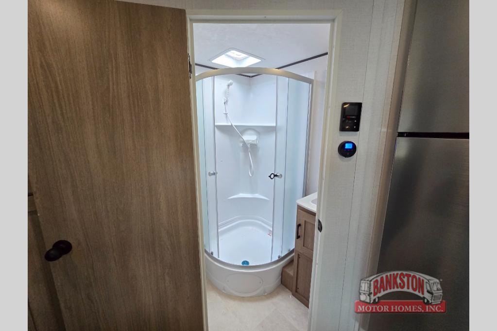 Whatever reason you camp, this lightweight trailer allows you to easily tow to your campsite, and enjoy comforts of home such as your own residential queen bed, wardrobe storage, and a full bathroom with a shower. The booth dinette provides both seating space and sleeping space for a guest. The cook will have an oven and a microwave to make meals, and a 10 cu. ft. 12V refrigerator for cold items, plus a galley sink with high rise faucet to keep the dishes clean.