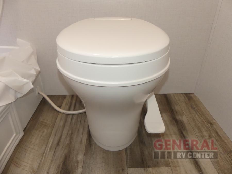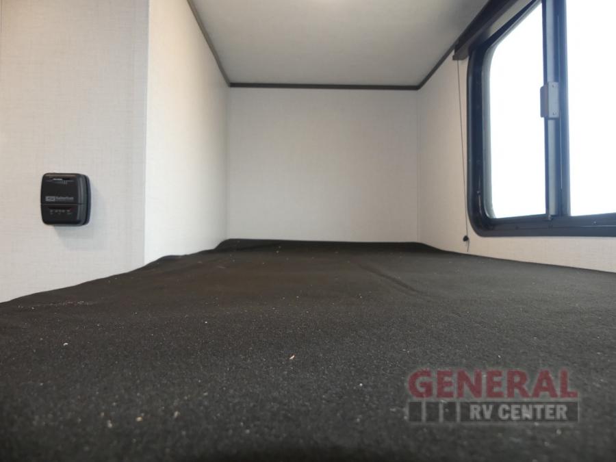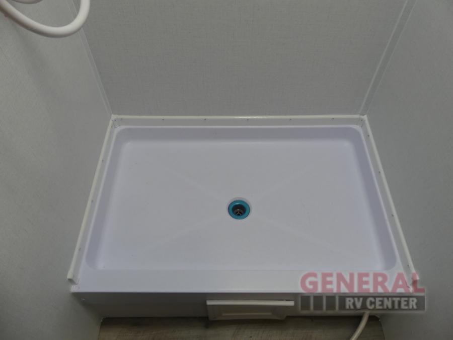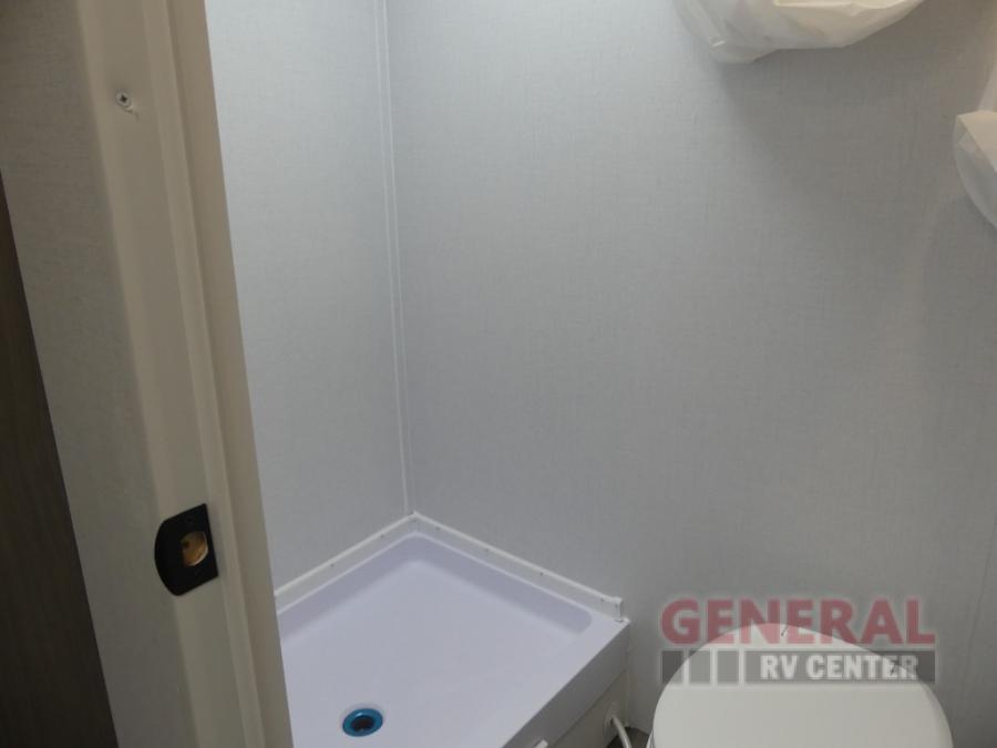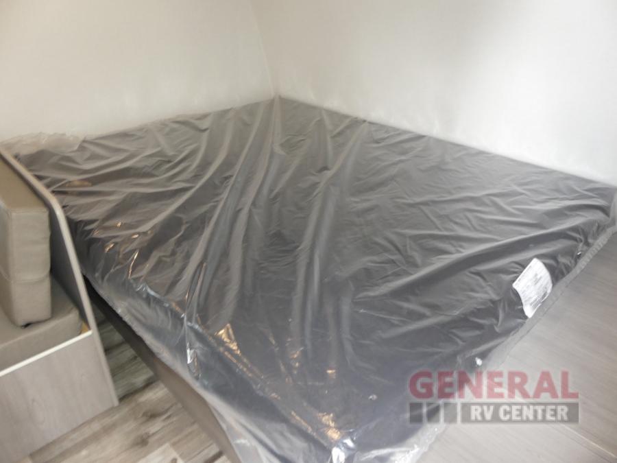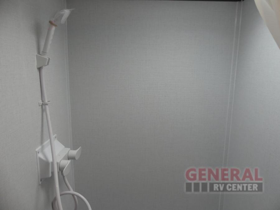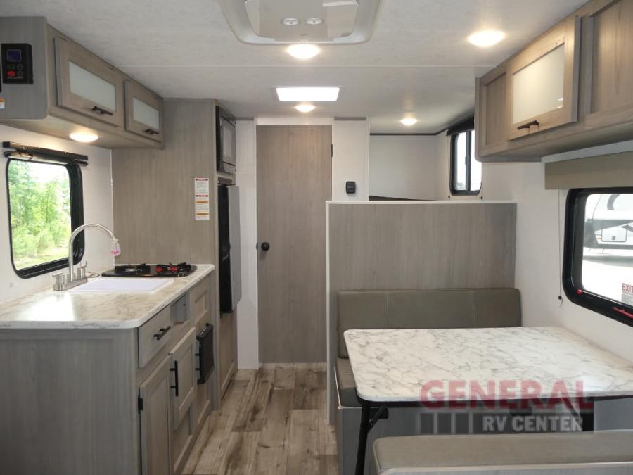 A perfect trailer for your family of three to five featuring a set of bunk beds for the kids, a queen bed up front for you, and the booth dinette that can be converted to sleep one or two more depending on size. For meals, there is a two burner cooktop and sink, plus a 3.3 cu. ft. refrigerator for your perishables. Overhead cabinetry can be found along both sides for your dishes and things. You will all appreciate the convenience of having your own private shower and toilet so that you don't need to use the campground facilities at night. If you enjoy spending time outside, an awning is available to provide even more living space outdoors!