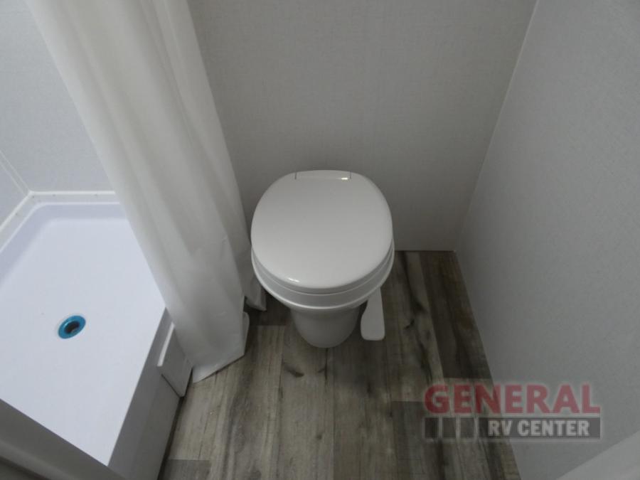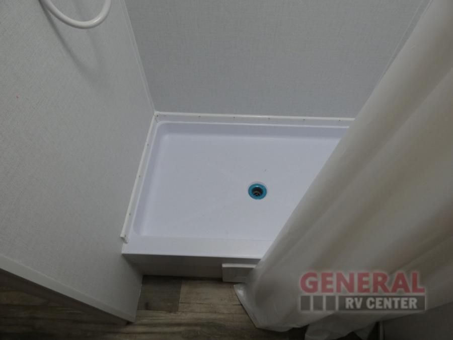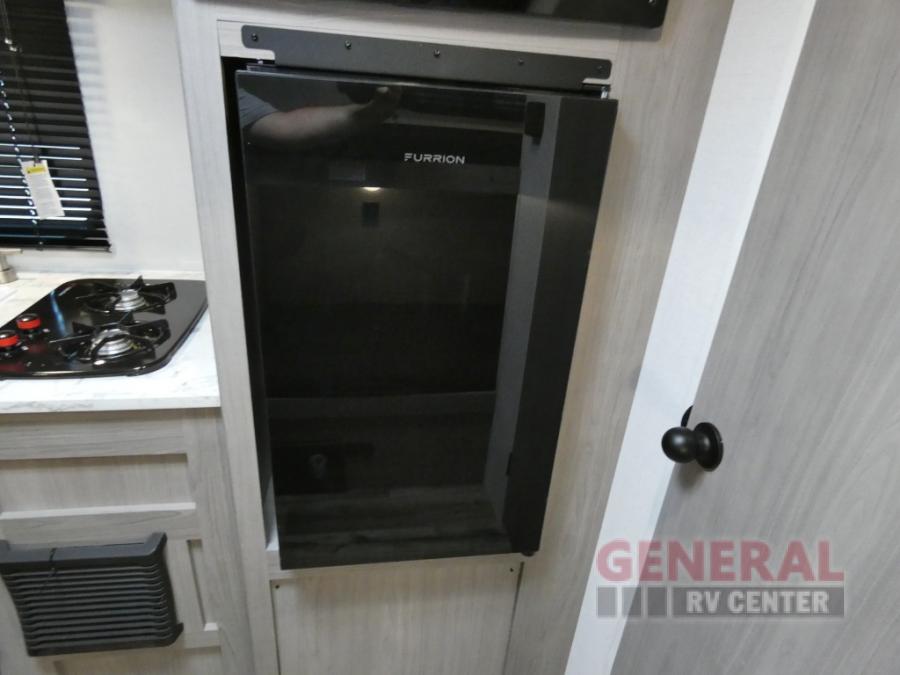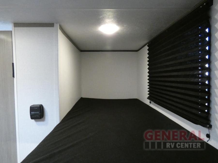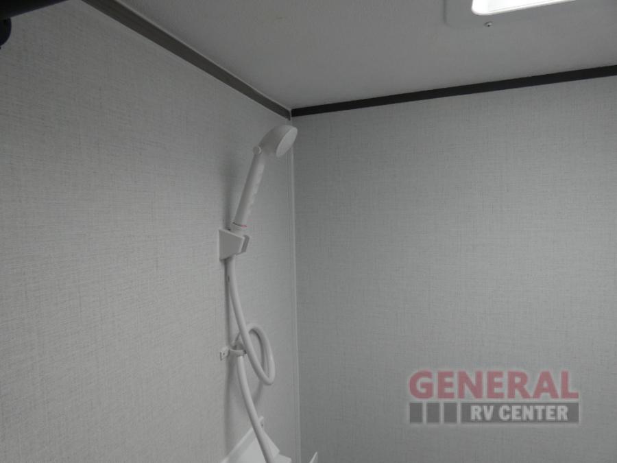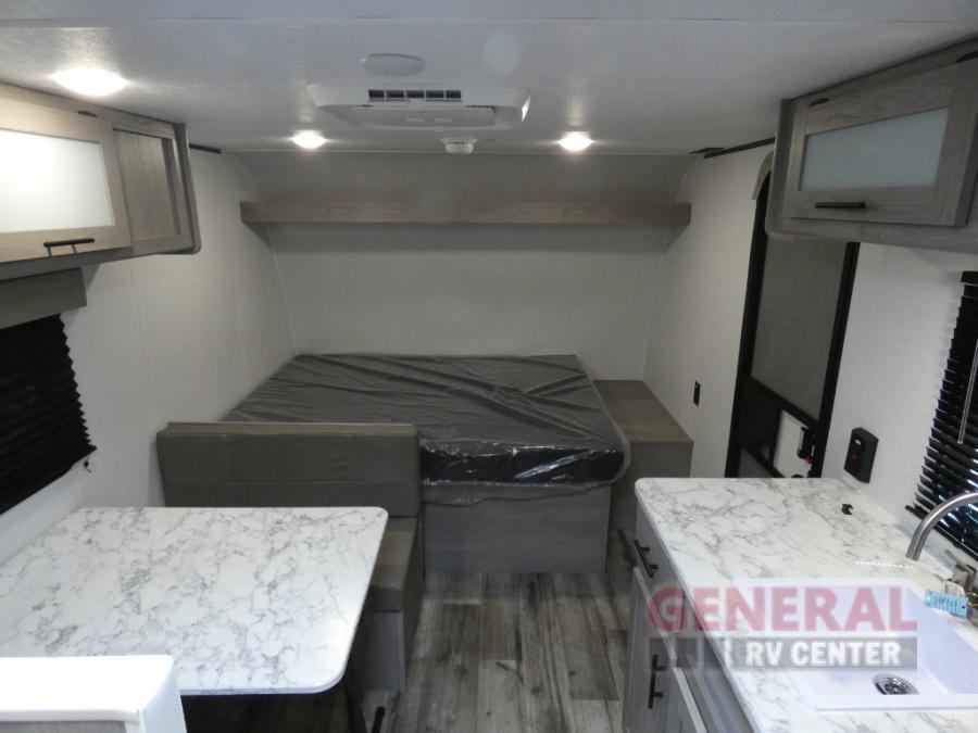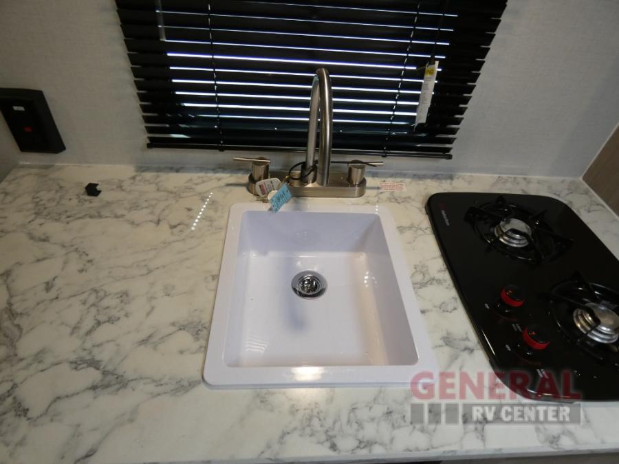 A perfect trailer for your family of three to five featuring a set of bunk beds for the kids, a queen bed up front for you, and the booth dinette that can be converted to sleep one or two more depending on size. For meals, there is a two burner cooktop and sink, plus a 3.3 cu. ft. refrigerator for your perishables. Overhead cabinetry can be found along both sides for your dishes and things. You will all appreciate the convenience of having your own private shower and toilet so that you don't need to use the campground facilities at night. If you enjoy spending time outside, an awning is available to provide even more living space outdoors!