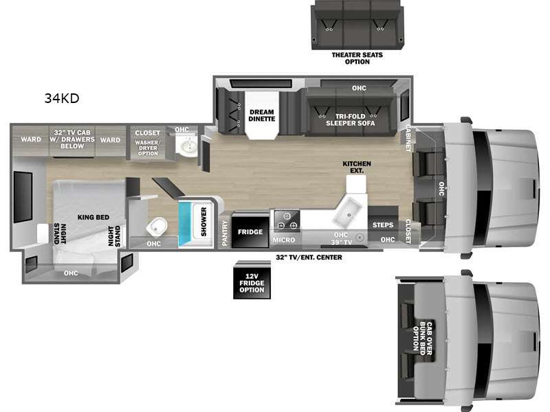 The Dynamax DX3 34KD Super C Diesel Motorhome is built for those who demand performance without sacrificing the comforts of home. Whether you're heading across the country or setting up at your favorite local campground, this motorhome delivers a first-class experience with superior engineering and top-of-the-line amenities.