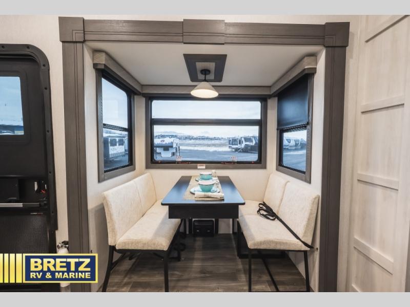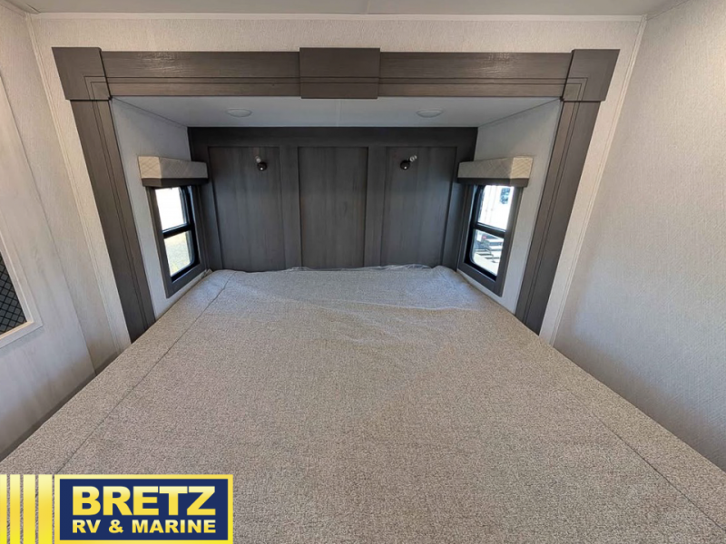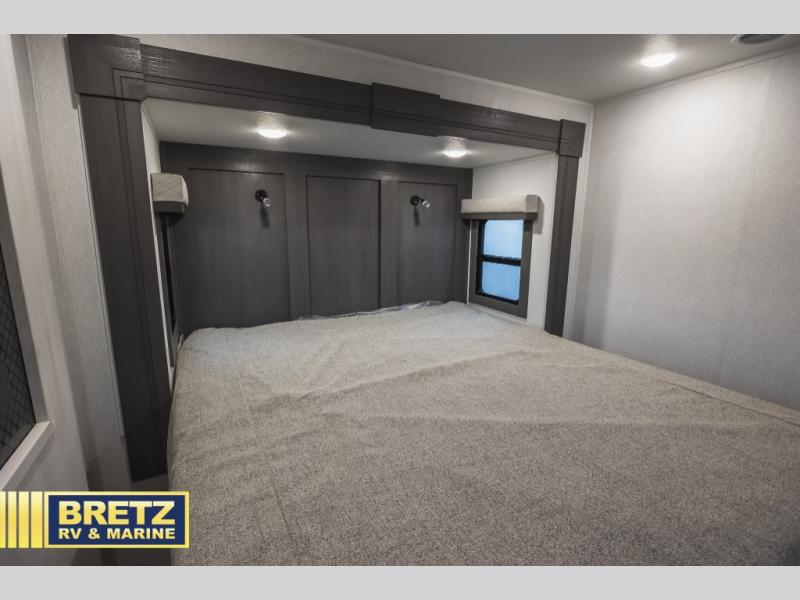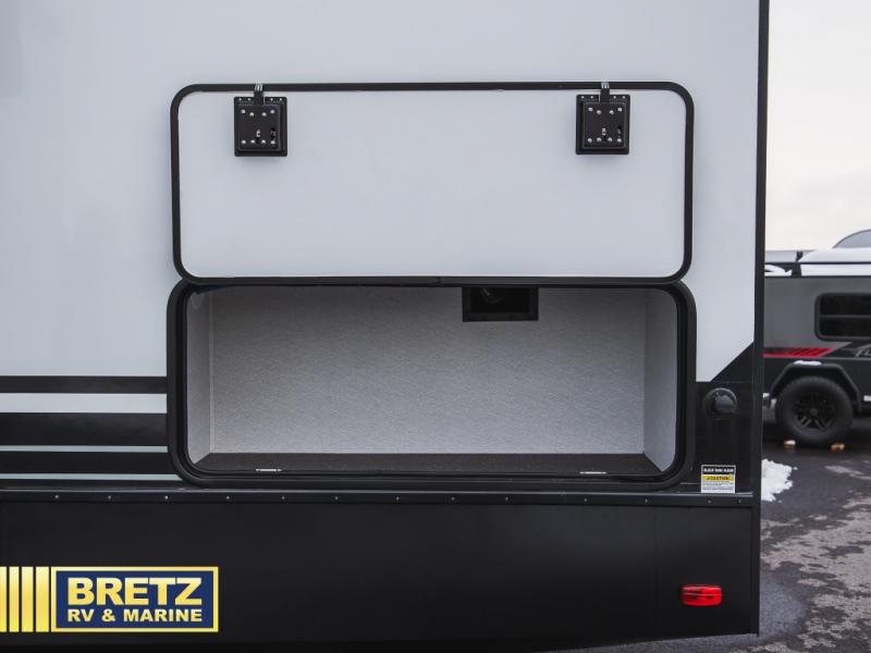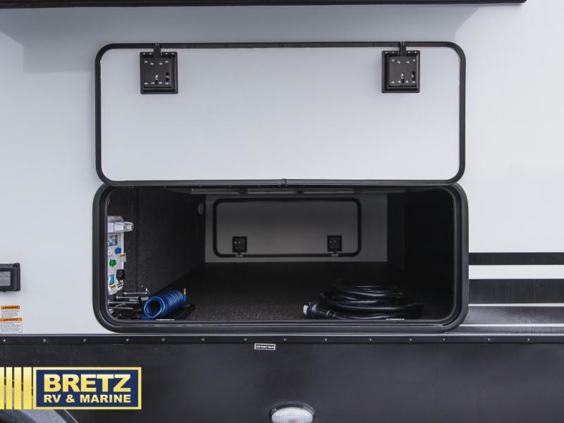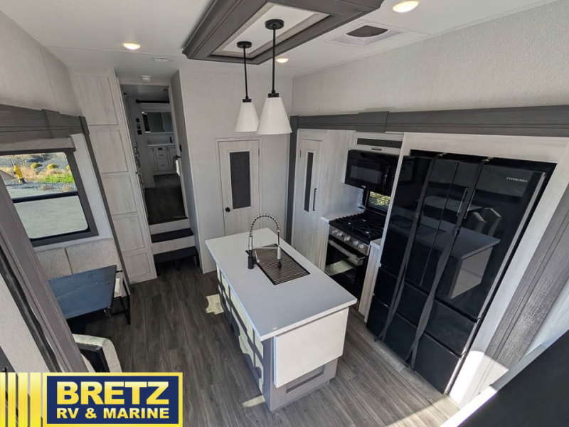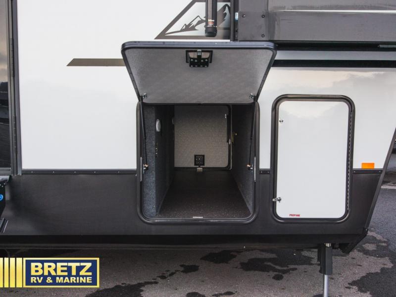 There is just too much luxury to name on the EAST TO WEST Ahara fifth wheel! These units are quite impressive, and once you see them, you'll know what we mean. The Ahara first grabs your attention with its fully painted aerodynamic fiberglass front cap, 102" wide-body chassis, and deep tint square frameless windows. For towing, you'll find a MORryde CRE 3000 suspension, LED marker lights, LED taillights with back-up lights, and rear view camera prep. Traveling in different climates is also made easy with the high-efficiency triple A/C system, 40,000 BTU high-capacity furnace, plus heated, insulated, and enclosed underbelly found within the Climate Package. Head inside to enjoy Slow Rise roller shades, a flush floor kitchen slide to help prevent trips, and solid surface countertops in the kitchen and bath to name a few luxuries!