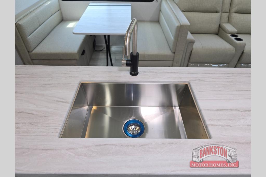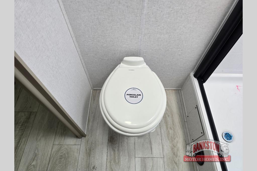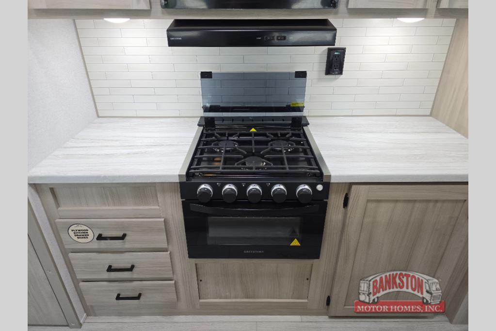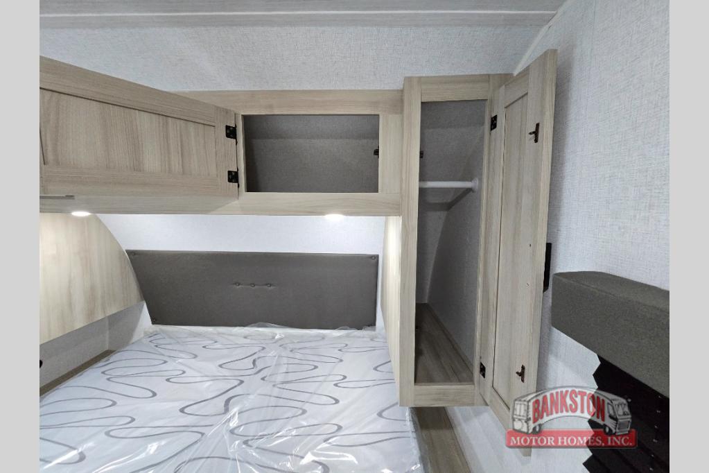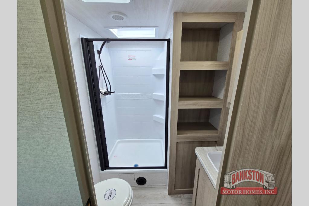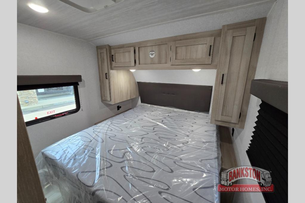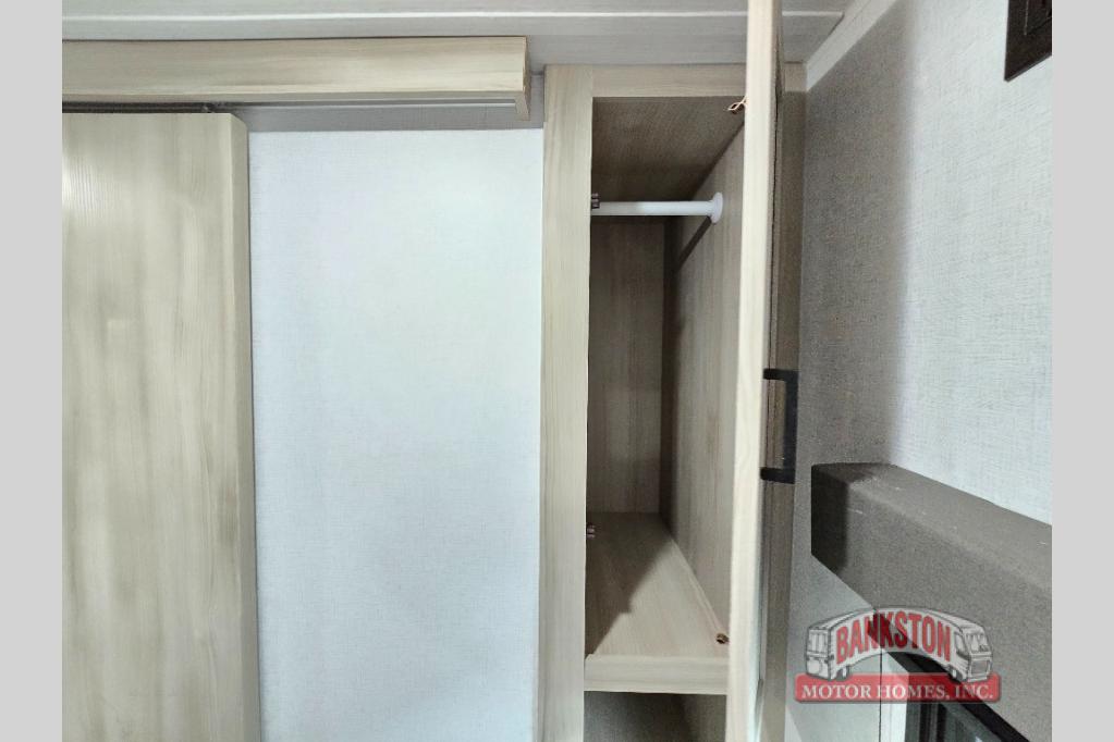 Camping in this double slide out travel trailer will be easier than ever! Once you arrive at your destination, set up the power awning, unload the pass-through storage, and head inside to make lunch in the full kitchen. There is a kitchen island for more prep space, along with a 10.7 cu. ft. 12V refrigerator, three burner range, and microwave oven. You'll find comfortable seating space on the booth dinette, jiffy sofa, and dual lounge chairs, and the fireplace is sure to make your space feel more like home. There is also hidden storage behind the fireplace for pantry items, board games, and more! Up front, a full bath and front private bedroom will let you freshen up before a great night's rest on the king bed!