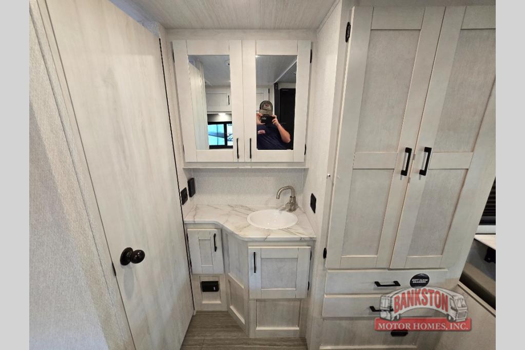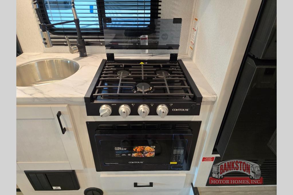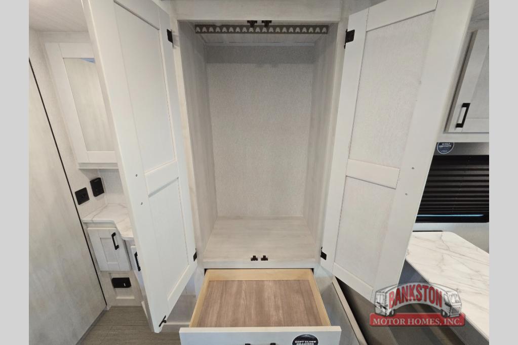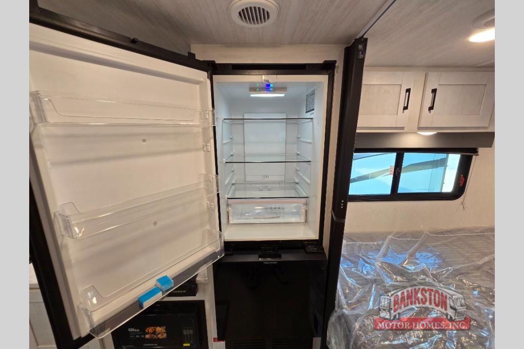 The journey will be oh-so enjoyable when you use this Entrada Class C gas motorhome to explore! You will be able to create meals each day you are on the road because the kitchen has everything you will need, like a convection microwave, a round sink, a cooktop, a flip-up countertop, and a 10.7-cubic foot refrigerator. There is even a pantry/wardrobe to store spices, chips, or canned goods. The rear of this unit includes the queen bed in one corner and the private bath in the other, and you can close the privacy curtain here to make a master bedroom for extra comfort!