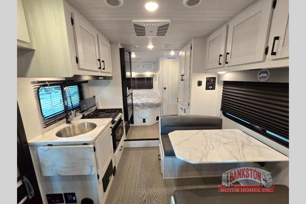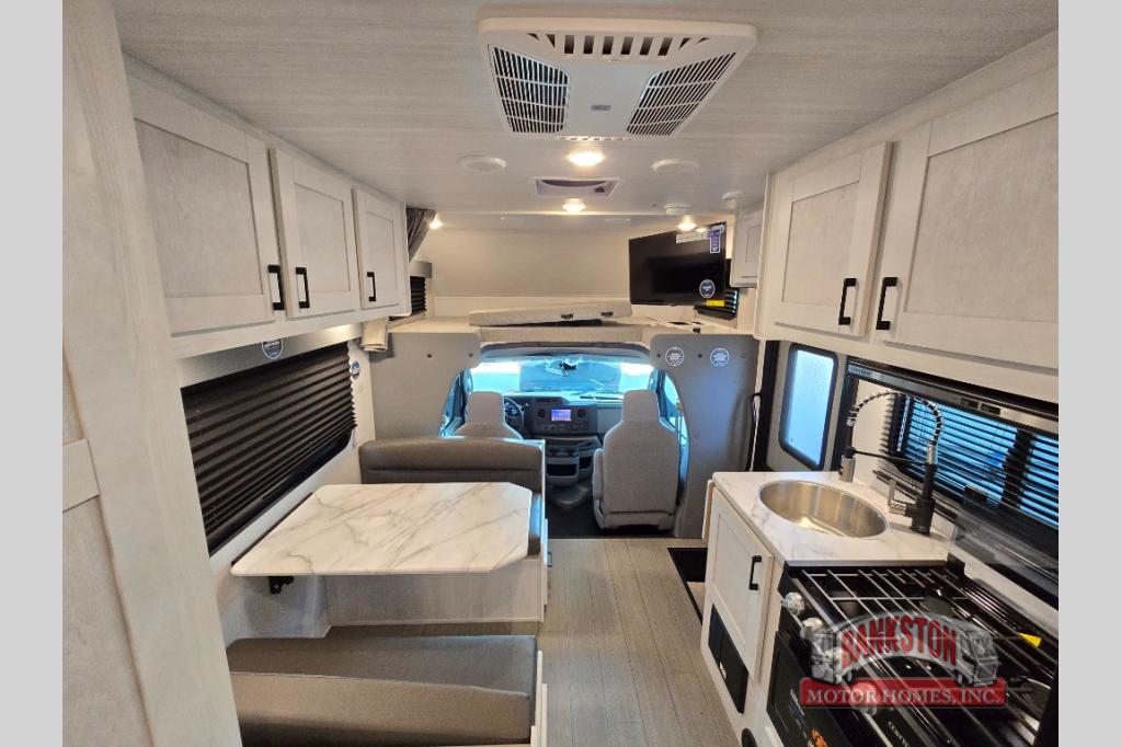 With any Entrada Class C gas motorhome from EAST TO WEST, the construction consists of an automotive painted fiberglass front cap, a Dicor DiFlex ll TPO roof membrane, and Azdel composite sidewalls for added durability. Some of the Entrada value package features include 12V tank heaters to camp during the cooler months, the Winegard Air 360+, plus backup and sideview cameras with a monitor for safety on and off the road. The interior offers a 7-foot interior height for a spacious feel, and 12V USB charge ports will keep your electronics powered up. Choose an Entrada for its tasteful design, attention to detail, bright interior and affordable price-point!
