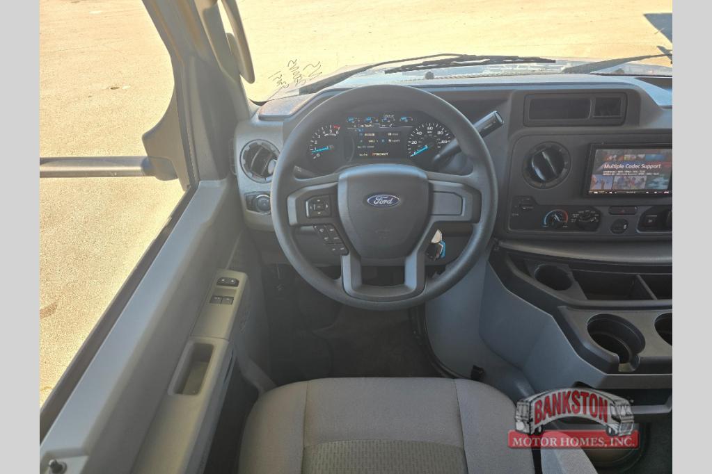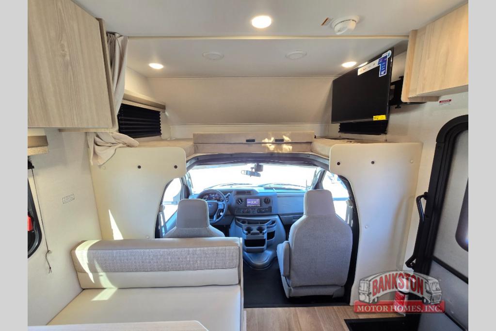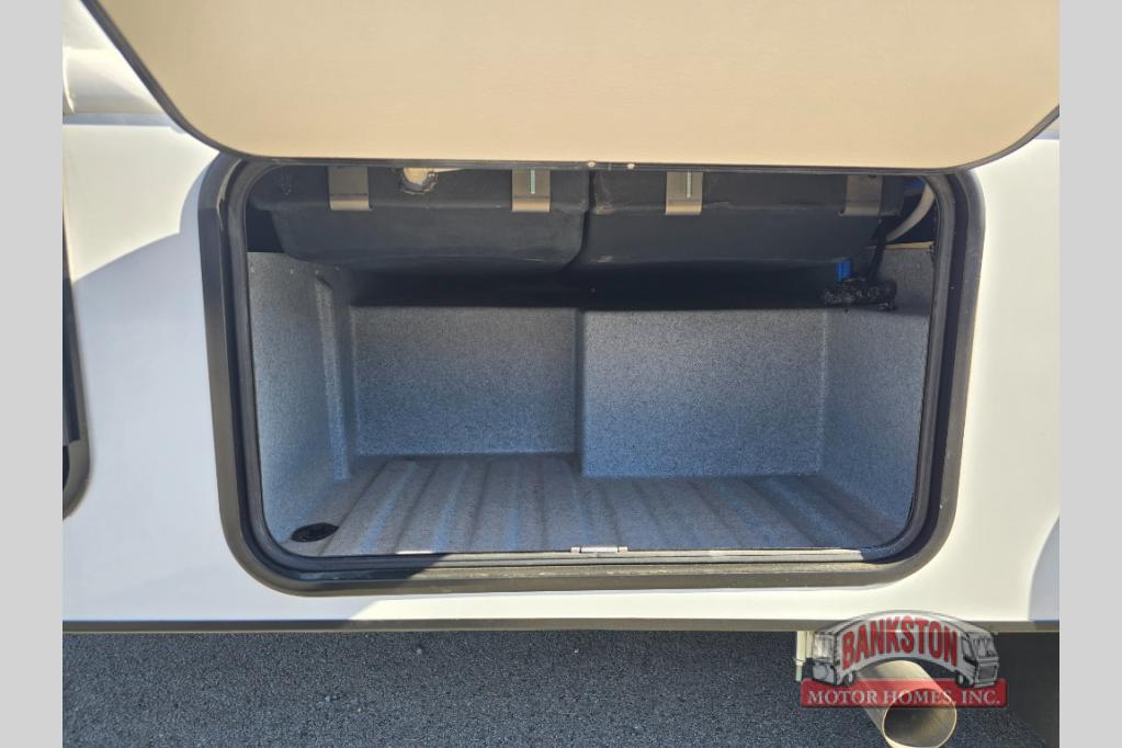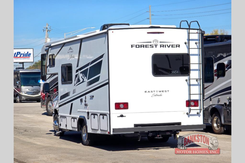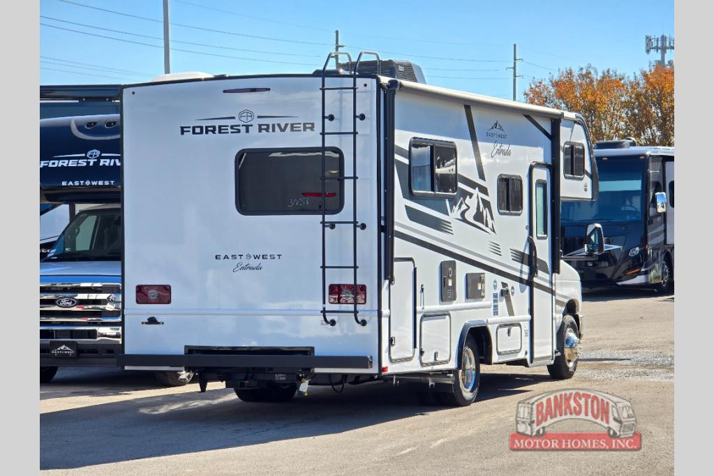 With any Entrada Class C gas motorhome from EAST TO WEST, the construction consists of a one-piece painted fiberglass front cap, a TPO roof membrane, and 2" Azdel composite sidewalls for added durability. There are rotocast exterior storage compartments with slam latch doors, along with an exterior LP Quick Connect, and a power awning with an LED light strip. You will also find rear and sideview cameras to help make maneuvering and parking your RV easier than ever. Inside, you'll feel right at home with soft close hardwood cabinet doors and drawers, a high-altitude tankless water heater, plus a 12V smart TV and USB ports to keep your electronics charged up!
