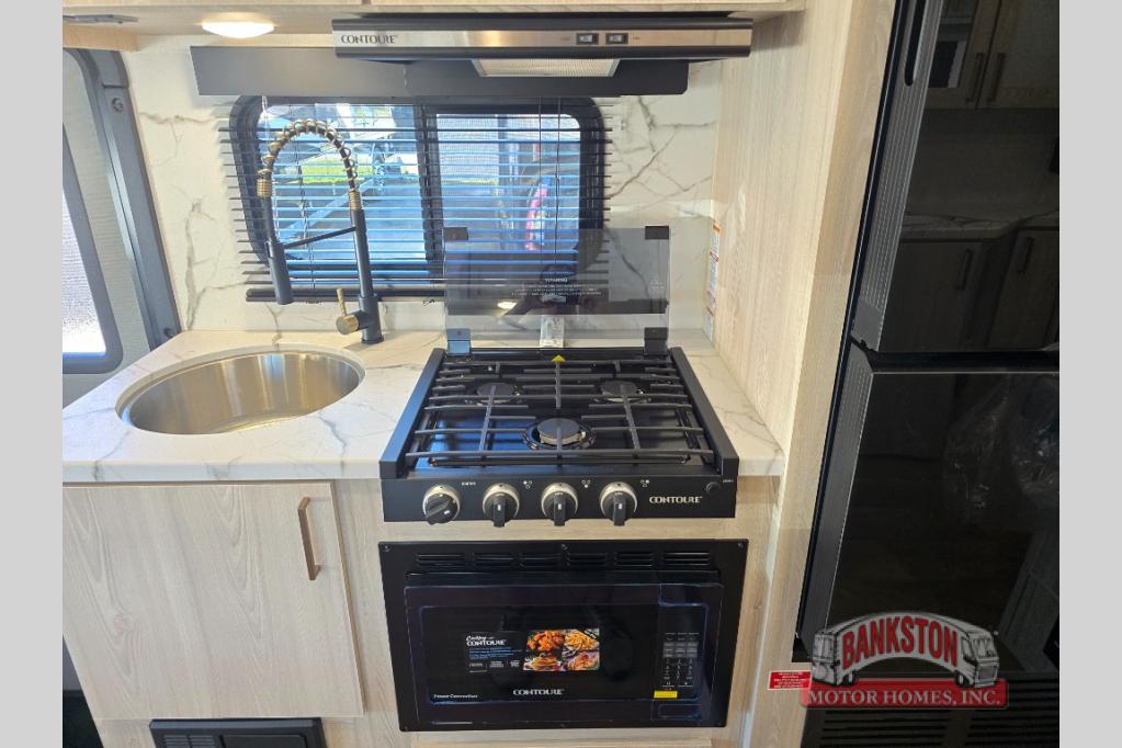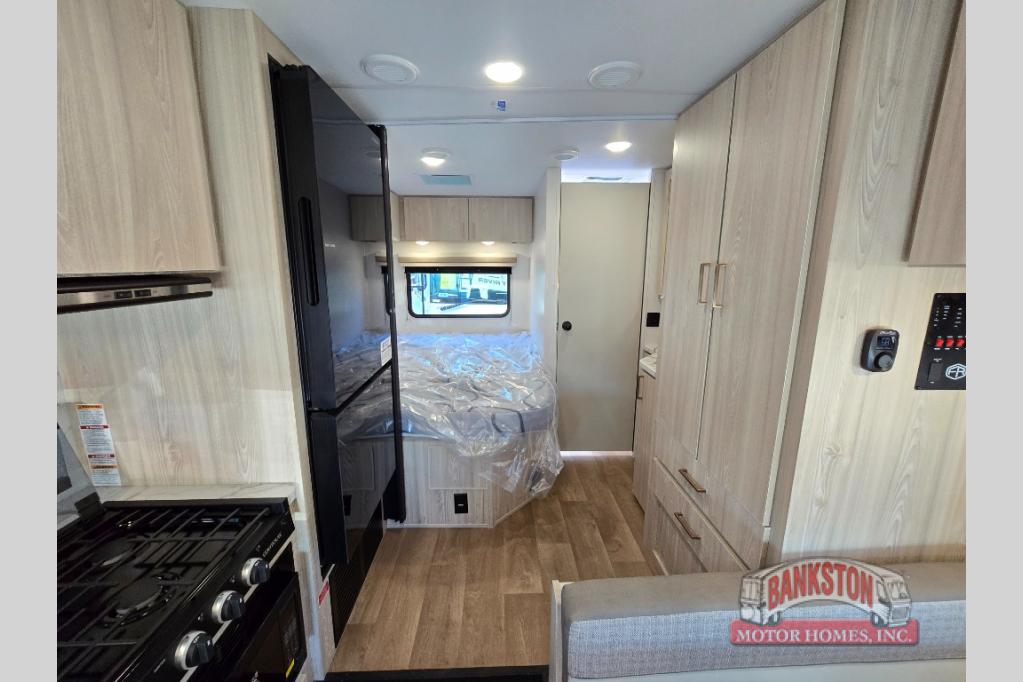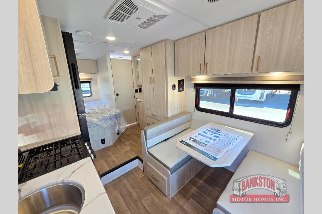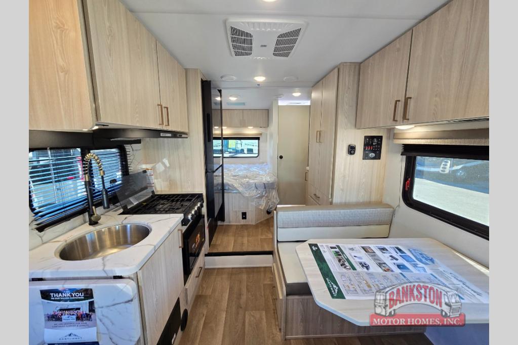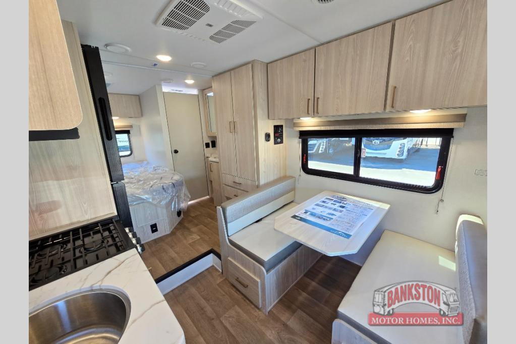 With any Entrada Class C gas motorhome from EAST TO WEST, the construction consists of a one-piece painted fiberglass front cap, a TPO roof membrane, and 2" Azdel composite sidewalls for added durability. There are rotocast exterior storage compartments with slam latch doors, along with an exterior LP Quick Connect, and a power awning with an LED light strip. You will also find rear and sideview cameras to help make maneuvering and parking your RV easier than ever. Inside, you'll feel right at home with soft close hardwood cabinet doors and drawers, a high-altitude tankless water heater, plus a 12V smart TV and USB ports to keep your electronics charged up!