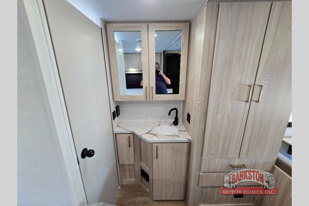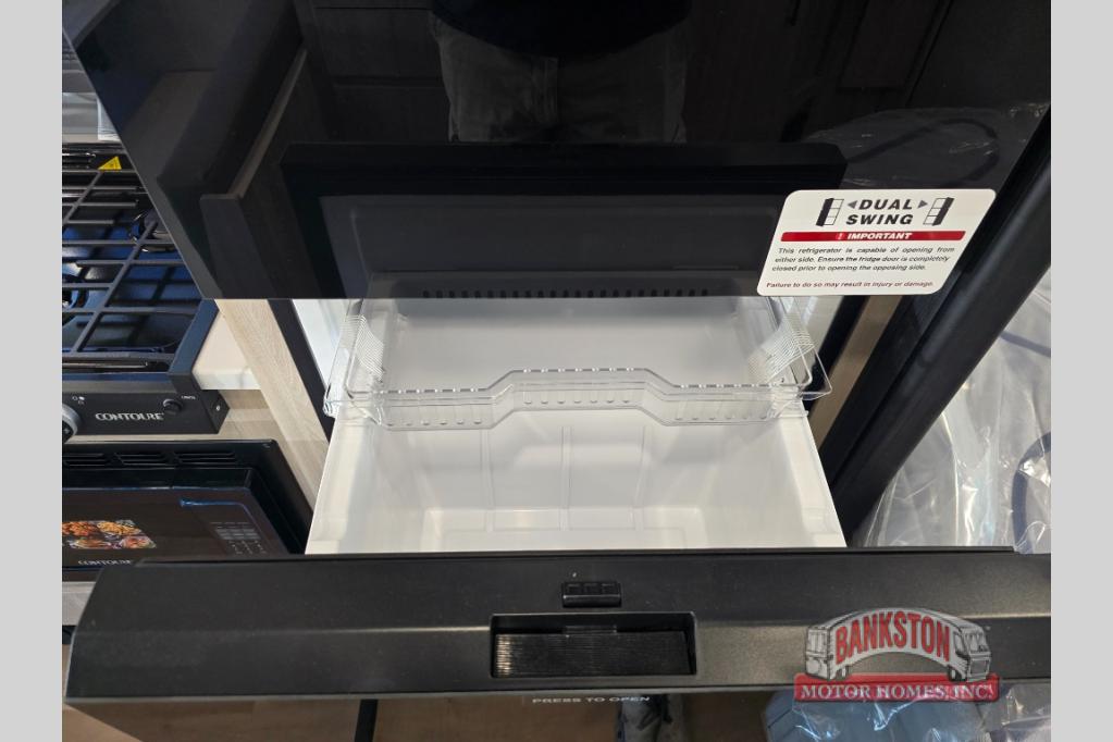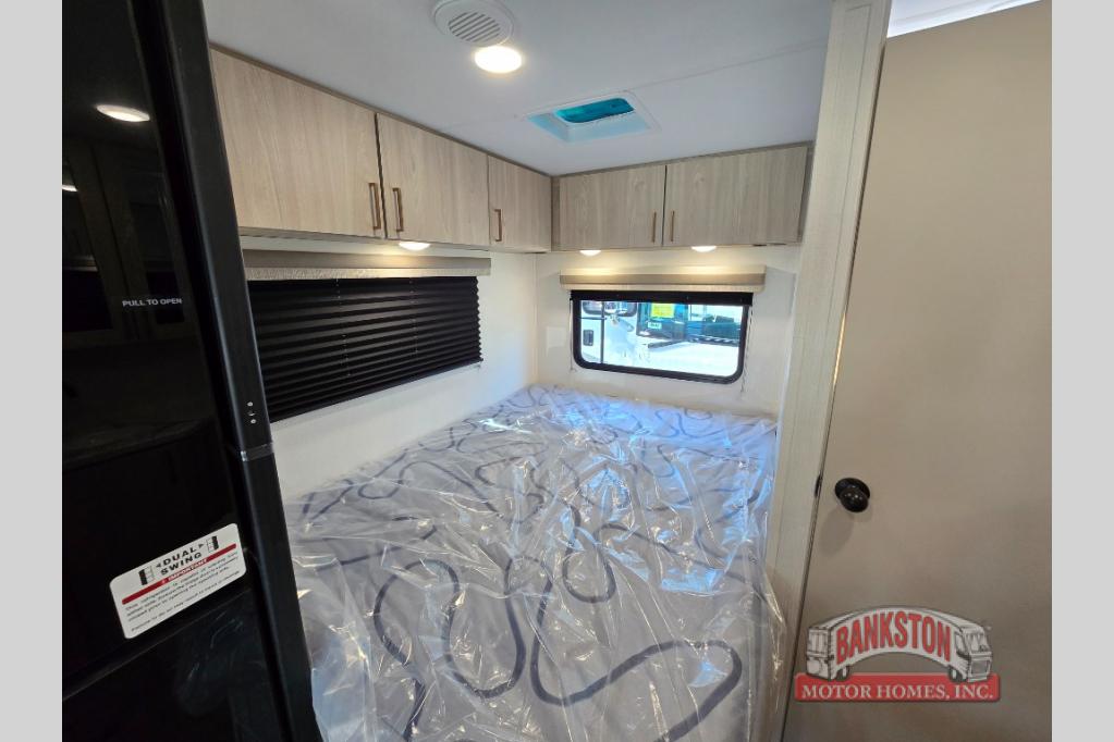 The journey will be oh-so enjoyable when you use this Entrada Class C gas motorhome to explore! You will be able to create meals each day you are on the road because the kitchen has everything you will need, like a convection microwave with air fryer technology, a round sink, a cooktop, a flip-up countertop, and a 10.7-cubic foot refrigerator. There is even a pantry/wardrobe to store spices, chips, or canned goods. The rear of this unit includes the queen bed in one corner and the private bath in the other, and you can close the privacy curtain here to make a master bedroom for extra comfort!