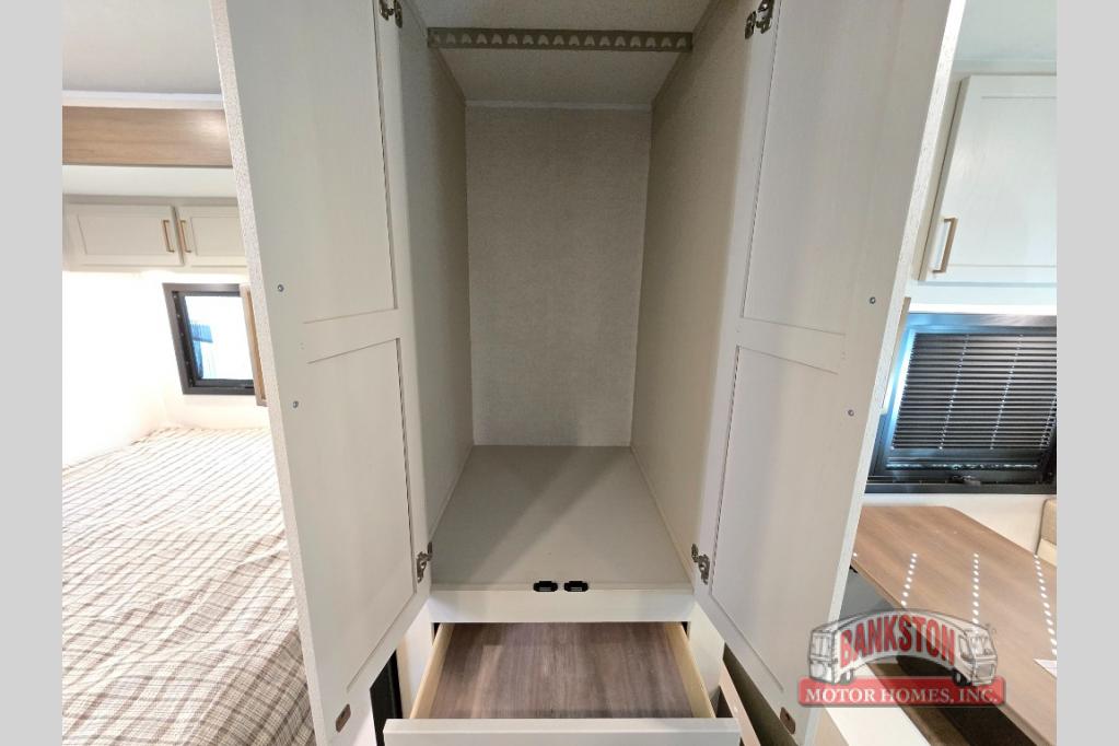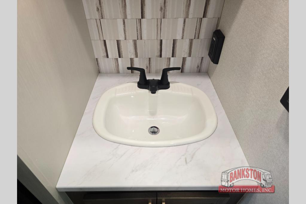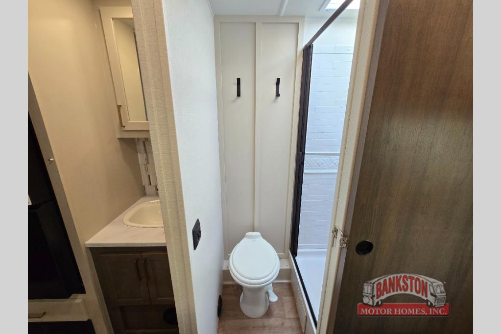 The journey will be oh-so enjoyable when you use this Entrada Class C gas motorhome to explore! You will be able to create meals each day that you are on the road because the kitchen has everything you will need, like a convection microwave, a round sink, a cooktop, a flip-up countertop, and a 10.7-cubic foot refrigerator. There is even a pantry/wardrobe for you to use to store spices, chips, or canned goods. Across from the queen bed slide, you'll find a private bath so you can get cleaned up in the morning, and the vanity with a medicine cabinet is located just outside the bathroom so that someone can brush their teeth while another is showering.