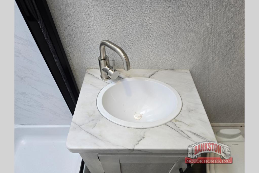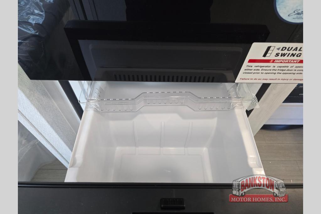 Comfort comes easy in this coach with theater seats and a slide out for more space! You'll find the booth dinette within the slide, along with the cooktop and convection microwave with air fryer technology. A double bowl sink will make clean up easier than ever, and there is a 12V dual swing refrigerator to keep your cold items fresh. The full bath with a 24" x 36" shower will let you clean up each day, and the rear private bedroom with a king bed is sure to provide a great night's rest! And any guests you may have can sleep on the 60" x 80" bunk-over cab or on the dinette once converted to sleeping space!