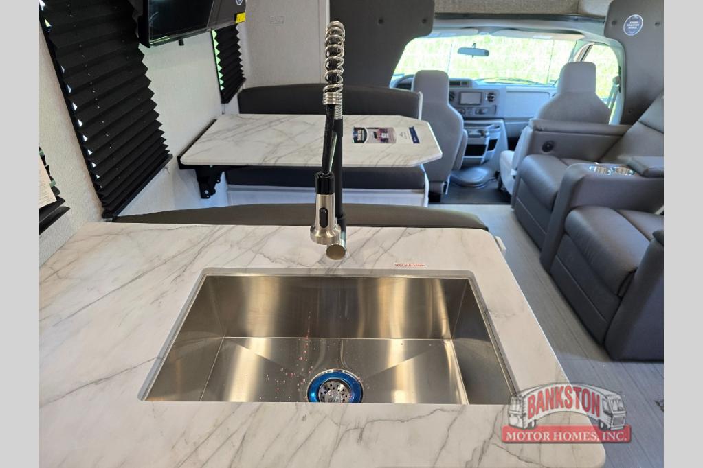 With any Entrada Class C gas motorhome from EAST TO WEST, the construction consists of a one-piece painted fiberglass front cap, a TPO roof membrane, and 2" Azdel composite sidewalls for added durability. There are rotocast exterior storage compartments with slam latch doors, along with an exterior LP Quick Connect, and a power awning with an LED light strip. You will also find rear and sideview cameras to help make maneuvering and parking your RV easier than ever. Inside, you'll feel right at home with soft close hardwood cabinet doors and drawers, a high-altitude tankless water heater, plus a 12V smart TV and USB ports to keep your electronics charged up!
