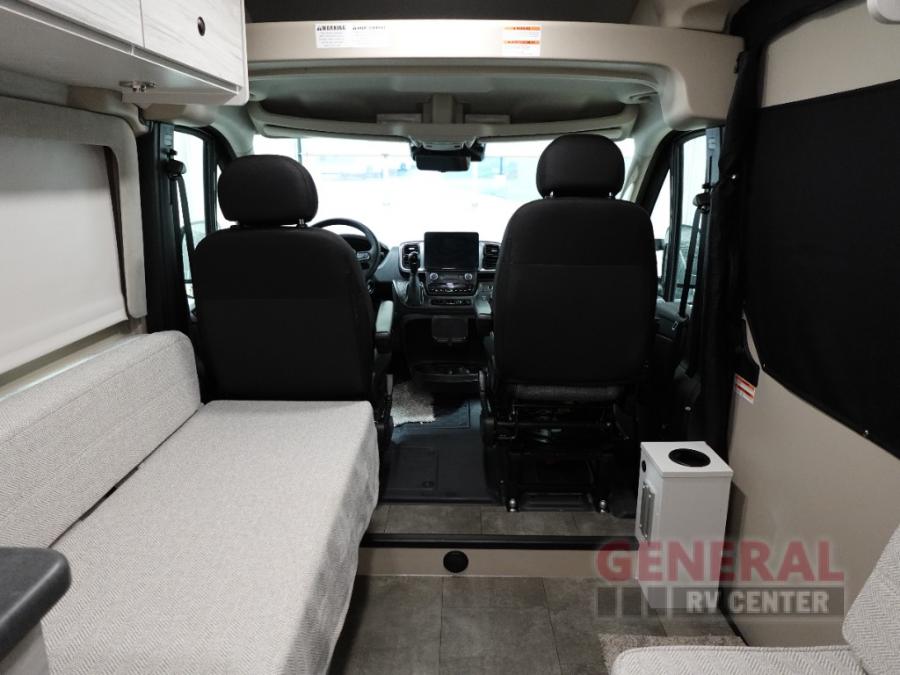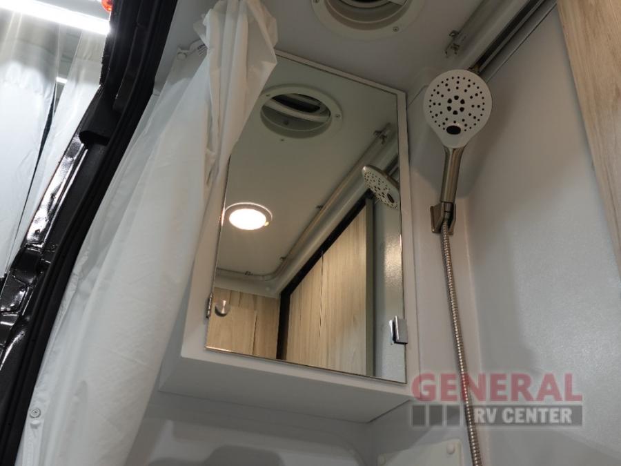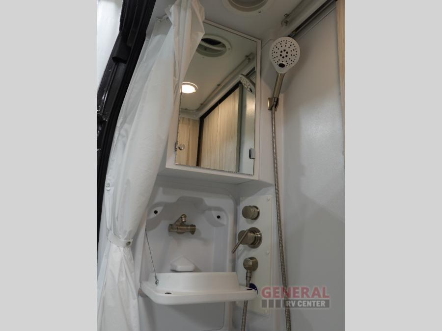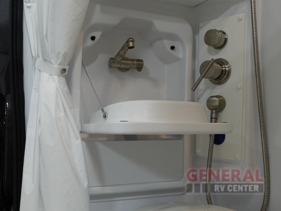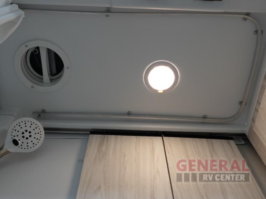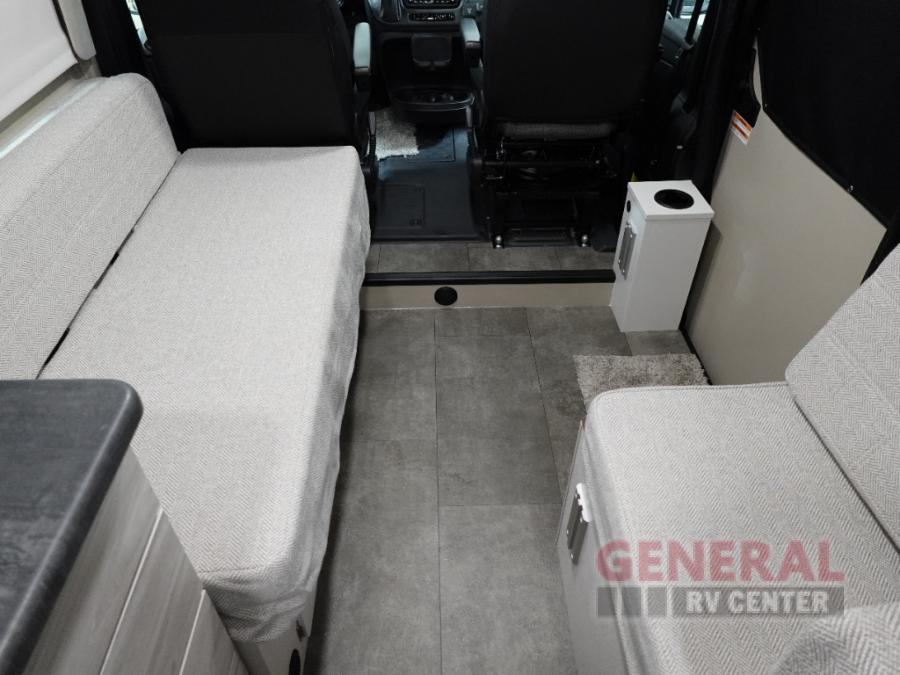 Any trip in this camper van will be spent in comfort thanks to the convenient wet bath and full kitchen amenities. You can whip up a hearty breakfast on the portable induction cooktop or use the microwave oven. There is a stainless steel sink to clean up, and the pressed countertops will be easy to clean. After you've hiked for the day and gotten cleaned up in the rear wet bath, you can relax on the 54" sofa that will convert to a 54" x 72" bed. There is also a 27" bench seat for more seating space and plenty of overhead cabinets for personal belongings, board games and more.