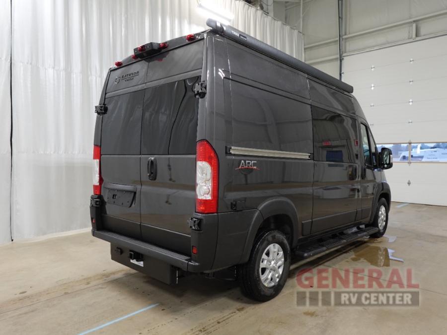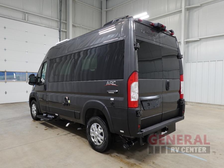The ARC Class B gas motorhome by Entegra Coach lets you explore the great outdoors in comfort and style! This agile camper van sits on a durable RAM ProMaster 1500 cargo van chassis with a 3.6L V6 24V VVT 276 HP engine, and features an exterior length under 18 feet for easy maneuvering in the city or on open roads. There are custom-molded ABS interior wall panels for added durability, and the LED-lit running boards are sure to be eye-catching. The exterior also includes automatic high-beam headlights, a chrome grille package, and a Thule patio awning with an LED light strip to make your outside time enjoyable. The ARC's interior will have you feeling at home with residential vinyl flooring, high-intensity LED ceiling lights, and decorative window valances with day/night roller shades. There are also convenient cockpit features that include a 10.1" Uconnect 5 NAV infotainment center, a ParkView rear backup camera with dynamic gridlines, a push-button start, and more!