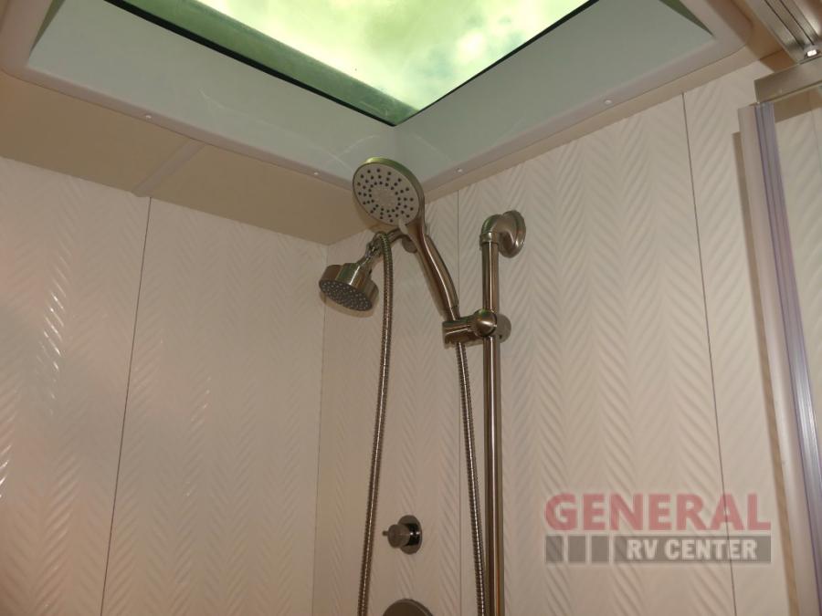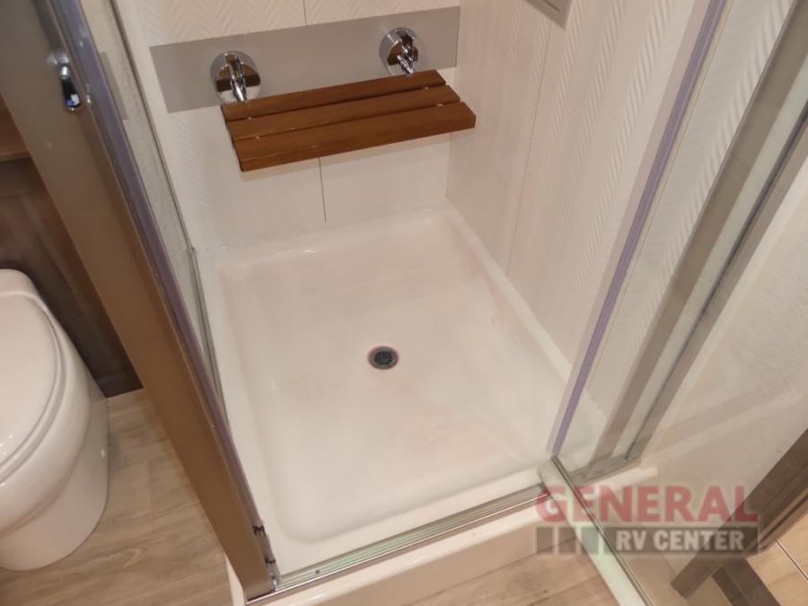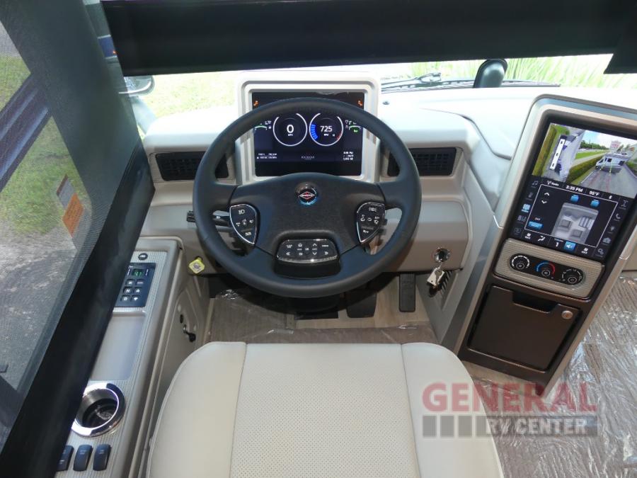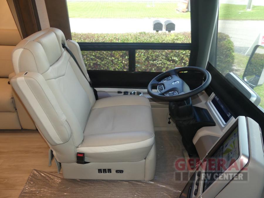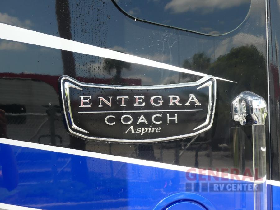 With any Aspire Class A diesel motorhome by Entegra Coach you will enjoy a smooth ride thanks to the Spartan K2 raised-rail chassis, the independent front suspension, and the E-Z Steer adjustable power steering assist. The leather captain's seats include 6-way power adjustment, lumbar and footrest functions that will have you sitting in the lap of luxury, plus there is a Valid Truline air leveling system with auxiliary air compressor for a smooth ride and easy set up. You'll find many high-end features inside, including a Teakwood shower seat in the bath, a decorative ceiling feature, solid surface countertops with dimmable LED accent lighting, and premium Crown Compass furniture. The Aspire also features exterior amenities that will make being on the road easier than ever. The push-button, power-unlatching baggage doors let you unload in record-time, and the Girard awnings will provide tons of shade to relax outdoors. A few new features you are sure to enjoy include a portable Shark vacuum cleaner, a Splendide washer and dryer, plus a filtered water dispenser at the kitchen sink!
