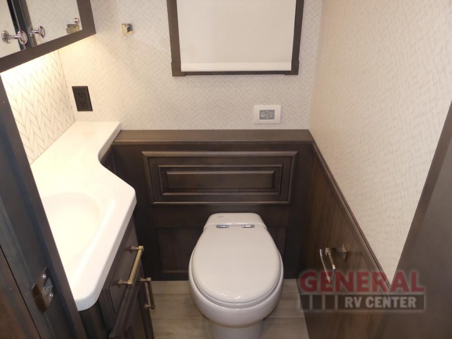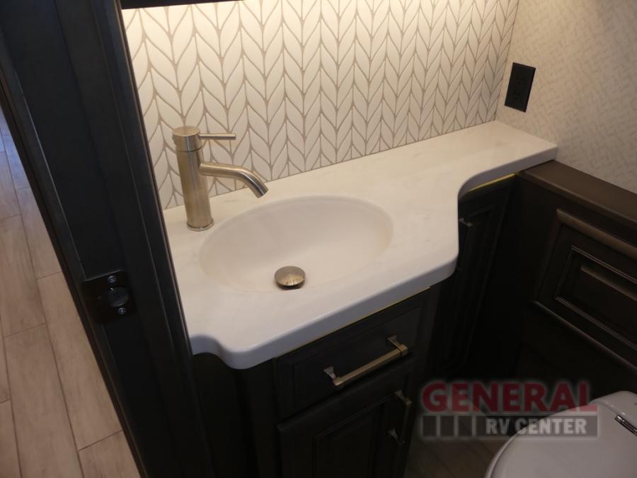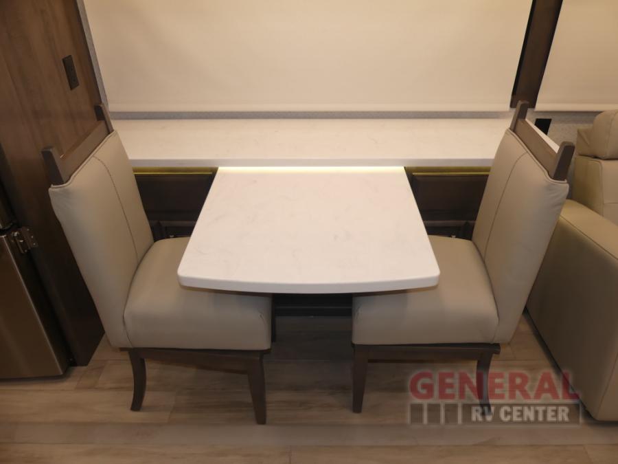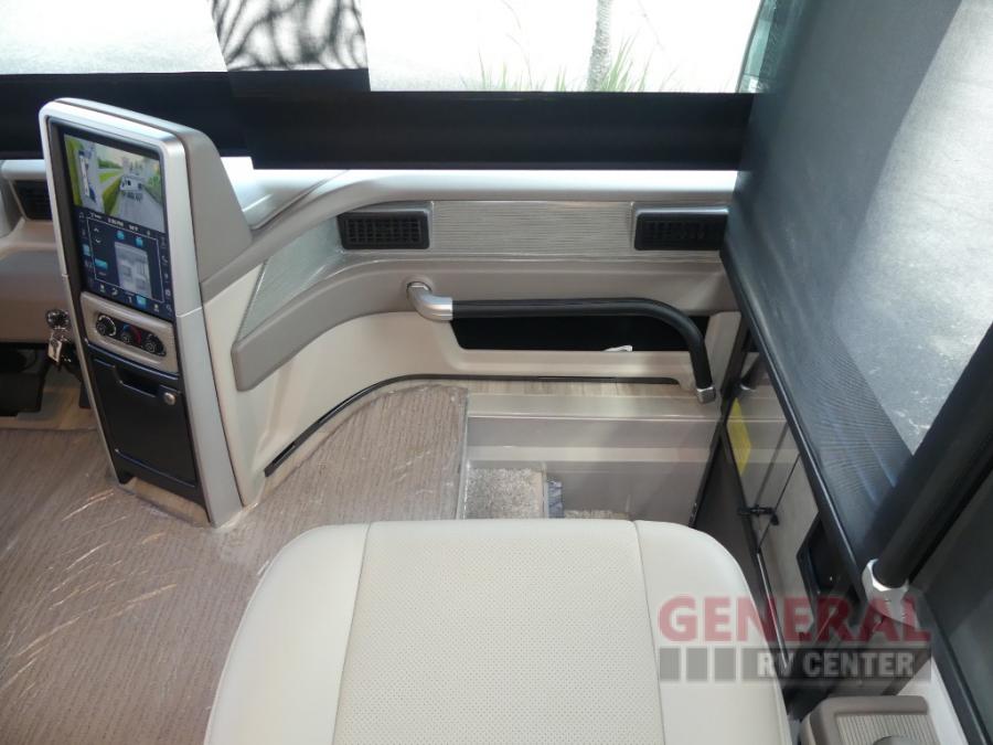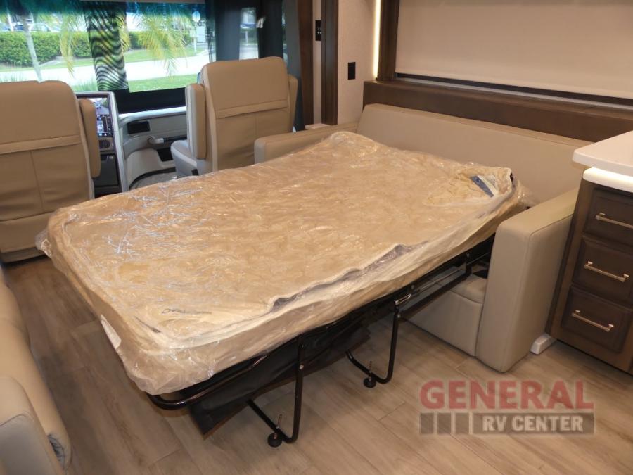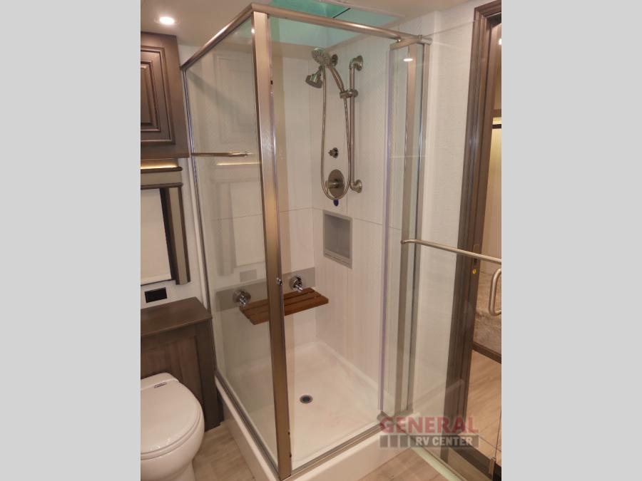 With any Aspire Class A diesel motorhome by Entegra Coach you will enjoy a smooth ride thanks to the Spartan K2 raised-rail chassis, the independent front suspension, and the E-Z Steer adjustable power steering assist. The leather captain's seats include 6-way power adjustment, lumbar and footrest functions that will have you sitting in the lap of luxury, plus there is a Valid Truline air leveling system with auxiliary air compressor for a smooth ride and easy set up. You'll find many high-end features inside, including a Teakwood shower seat in the bath, a decorative ceiling feature, solid surface countertops with dimmable LED accent lighting, and premium Crown Compass furniture. The Aspire also features exterior amenities that will make being on the road easier than ever. The push-button, power-unlatching baggage doors let you unload in record-time, and the Girard awnings will provide tons of shade to relax outdoors. A few new features you are sure to enjoy include a portable Shark vacuum cleaner, a Splendide washer and dryer, plus a filtered water dispenser at the kitchen sink!