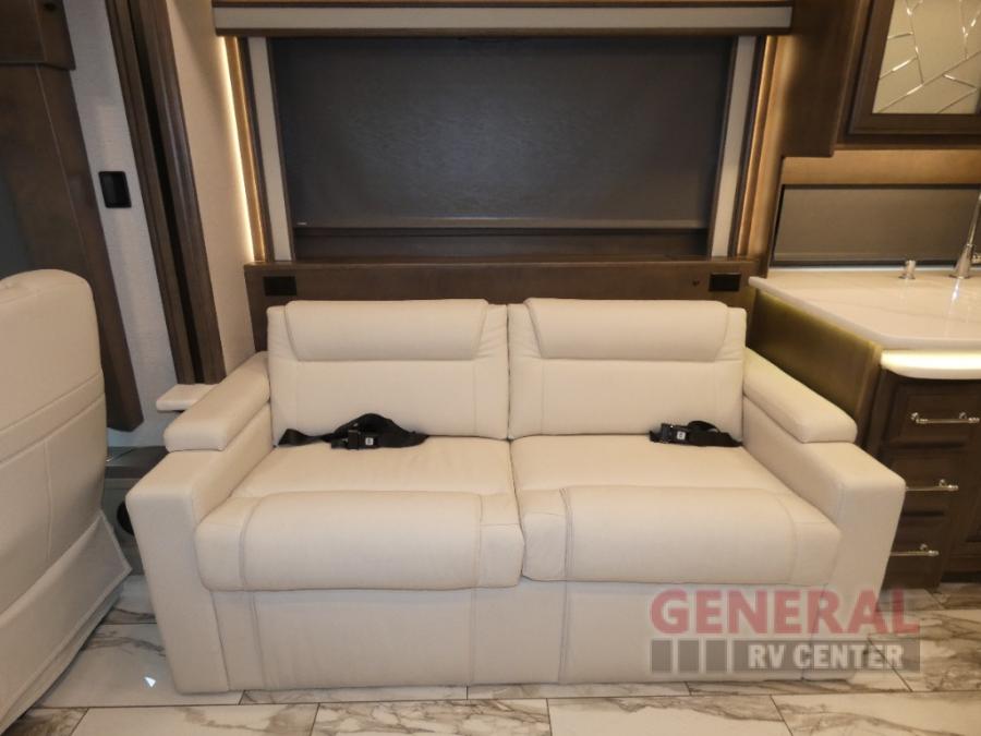 Each Cornerstone Class A diesel motorhome by Entegra Coach is packed with luxury features to make each trip memorable! The Spartan K3 raised-rail chassis provides a strong foundation, and the Cummins 605 HP engine can power your many excursions. You will appreciate the collision avoidance system with collision warning, adaptive cruise control, and electronic stability control, plus there are six HD cameras included in the surround view system for easy maneuvering in and out of campgrounds. The interior is designed to make you feel at home with premium leather Crown Compass furniture, hand-laid porcelain tiled floors, a Personal Comfort A5 king-size mattress, and many more residential features. The luxury-packed amenities don't stop there! Outside you'll find a heated exterior utility center, two power slide out basement storage trays, (2) 200W solar panels, and hot and cold water hook-up in the front cap area with a 30 ft. quick-disconnect hose so you can easily keep the front of your unit clean!