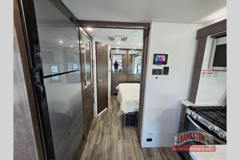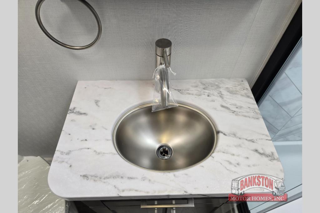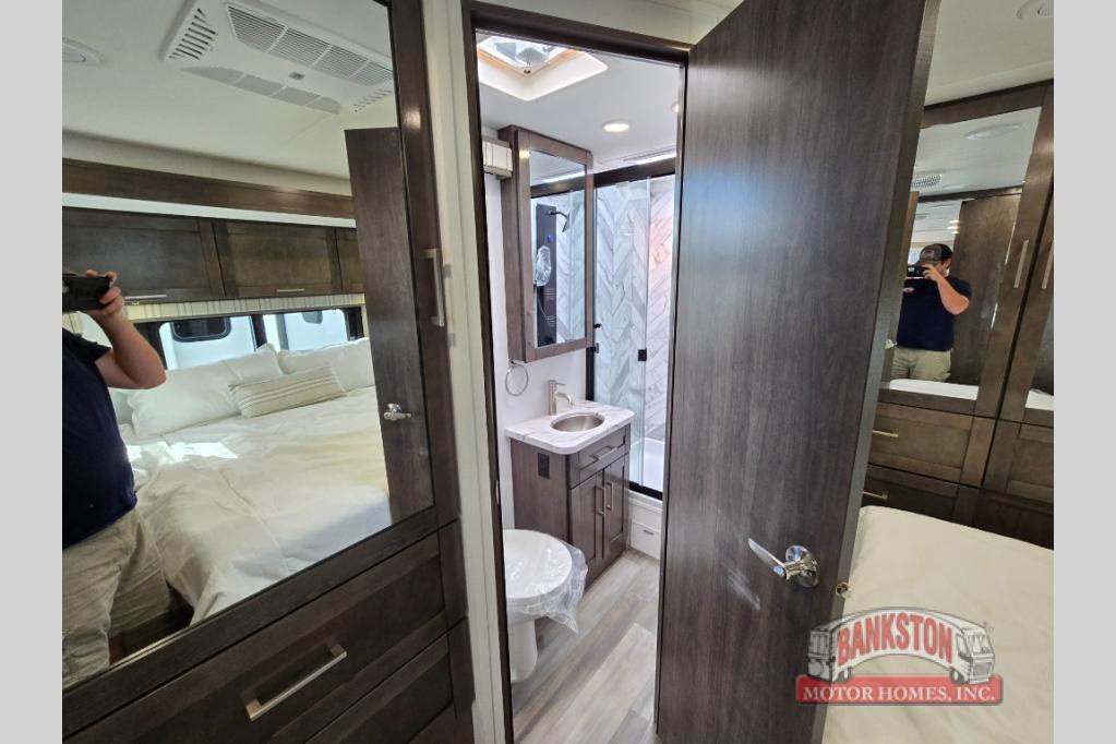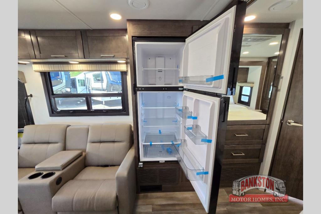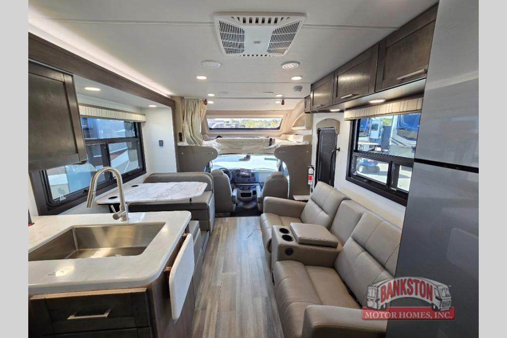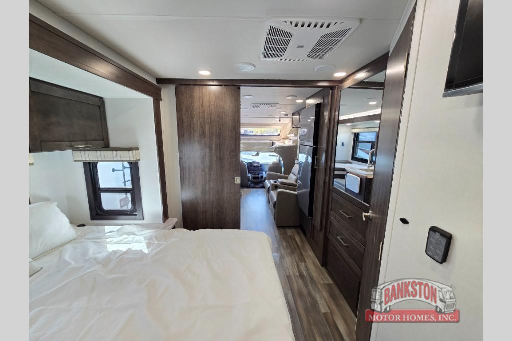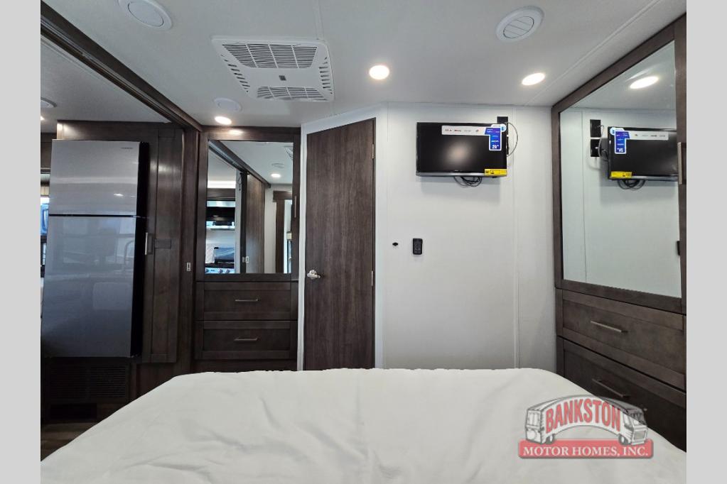 You can bring a few guests to join in on the fun with this motorhome! The bunk over cab and 66" x 76" king bed offer comfortable places to sleep, plus you can transform the booth dinette and the sofa into extra sleeping spaces if needed. Everyone can freshen up each morning with the 30" x 36" shower in the rear corner bathroom, and keep their bellies full with a Furrion all-in-one cooktop and oven plus a residential microwave. There is even a countertop extension to make meal prepping easier. Take the fun outside and watch movies on the exterior LED HD Smart TV while staying protected by the 18' electric awning with LED lights!