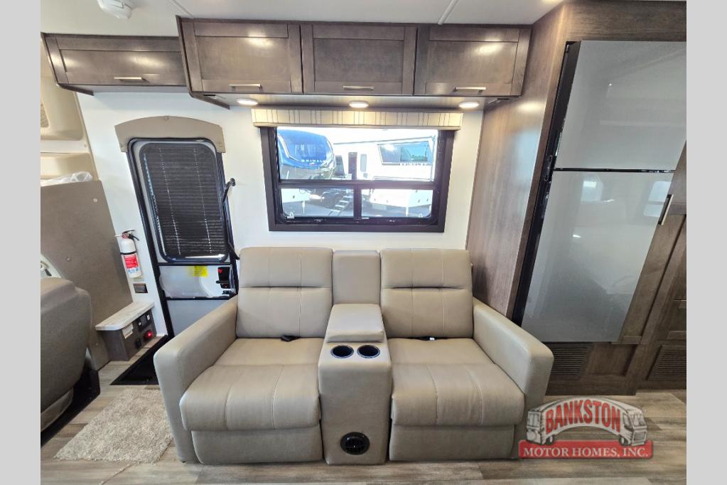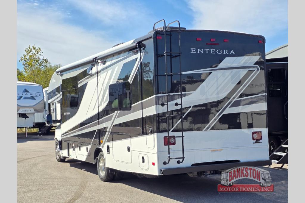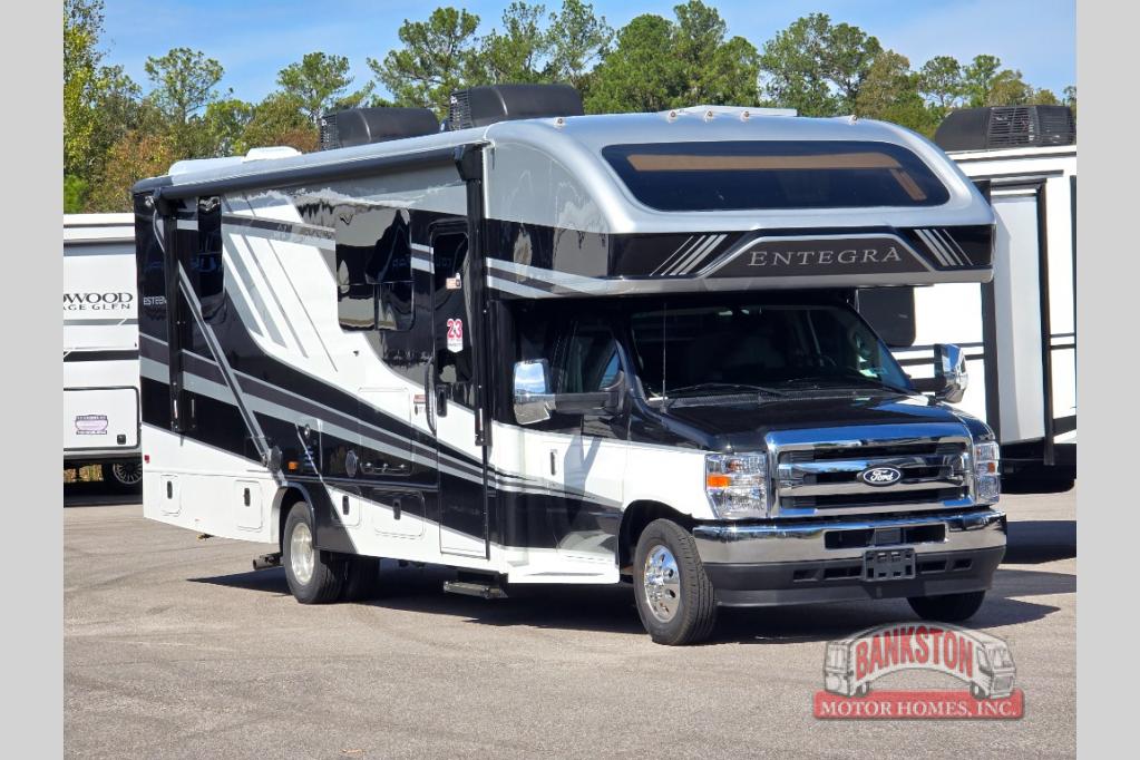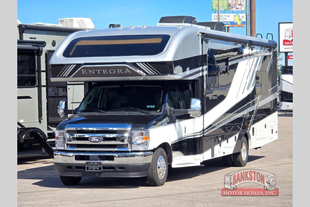 Make one of these Entegra Coach Esteem Class C gas motorhomes your own! The interior design includes solid-surface countertops that pair well with the many technological upgrades. The fully custom-molded ABS surround in the cab area features its signature panoramic window and power shade for a beautiful view while you drive and provide privacy at night. They also come with E-Z Drive Elite which has a computer-balanced driveshaft, Koni FSD shocks, Hellwig helper springs, and a heavy-duty rear stabilizer bar for a smooth ride. Automatic leveling jacks will make set-up a breeze and the electric awning with LED lights will create an outdoor living space where you can relax after unpacking. Inside, you'll enjoy hardwood cabinet doors and drawer fronts, blackout night roller shades, and high-intensity recessed LED ceiling lights to keep your space well lit. There is also a JBL audio system and a BMPRO total coach control system to easily manage your unit's functions!