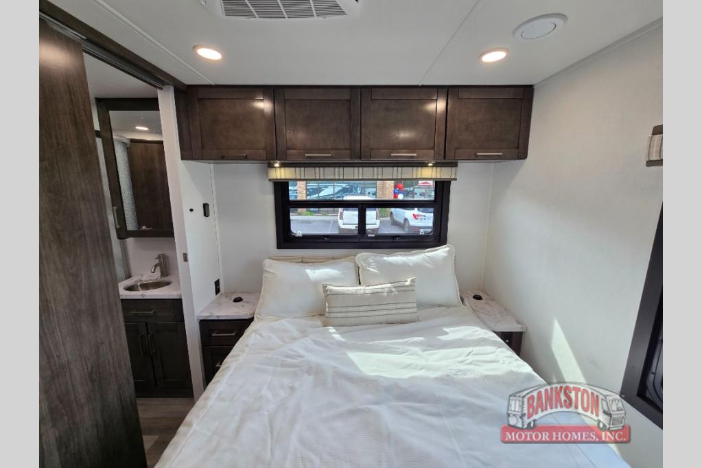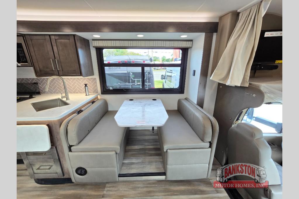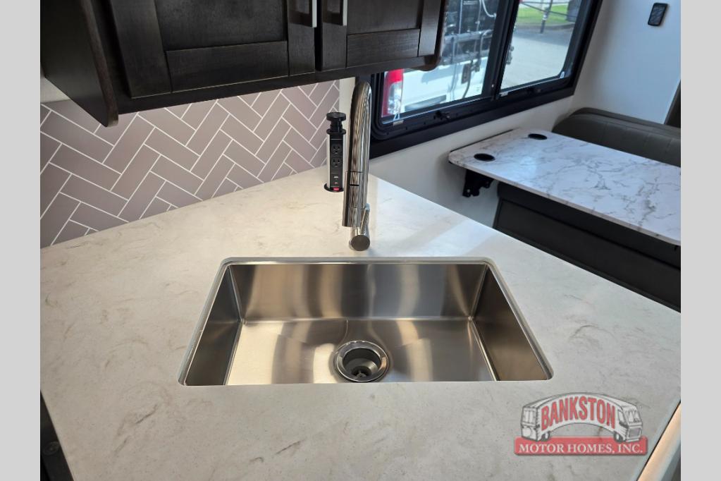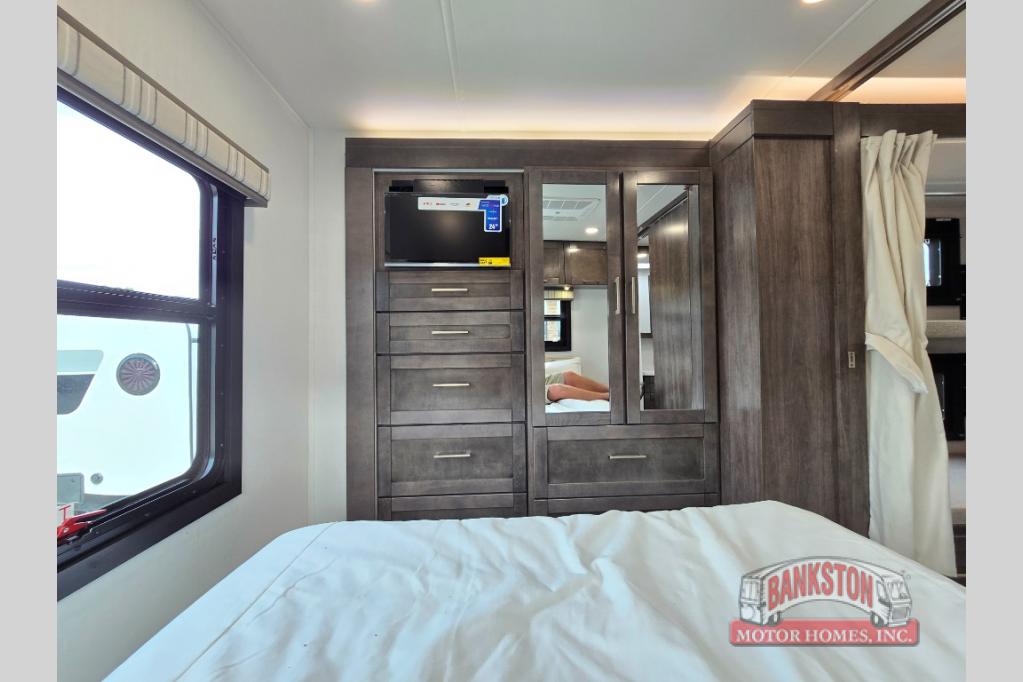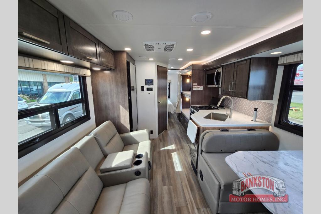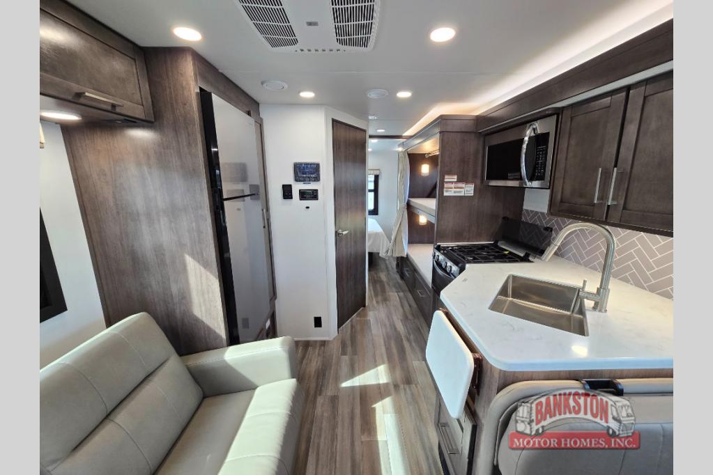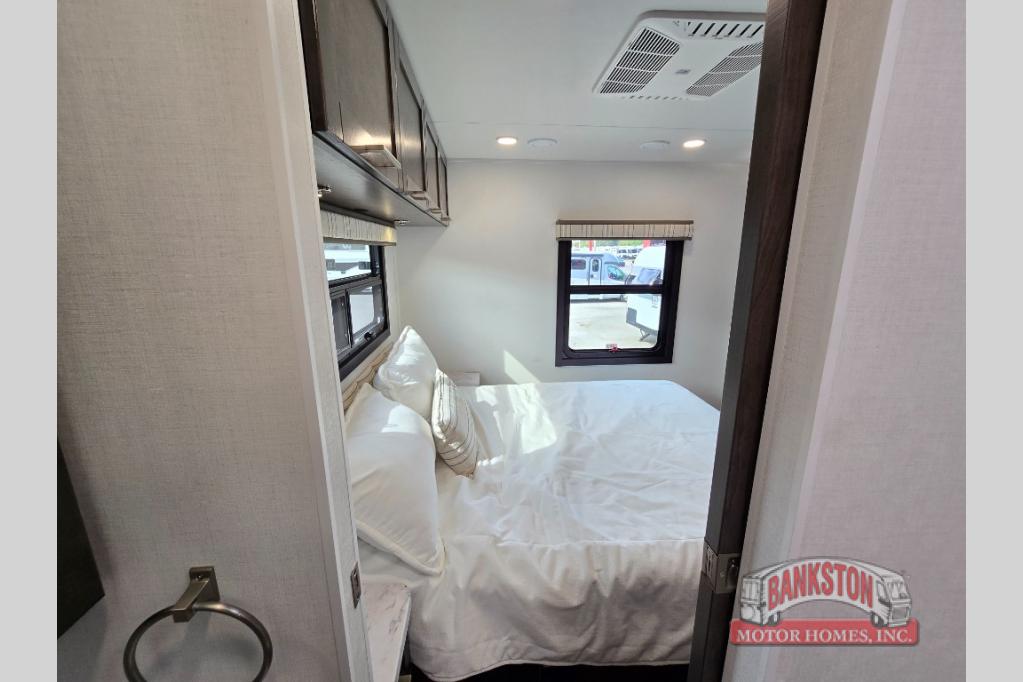 The whole family can travel together in this motorhome! The kiddos can sleep on the set of bunk beds with tablet holders and you can sleep on the 60" x 74" queen bed in the rear private bedroom. Everyone can easily access the dual entry bathroom to freshen up in the 32" radius shower each morning. Cook up delicious meals on the Furrion all-in-one cooktop, then head to the booth dinette which can also transform into an extra sleeping space. You can take an afternoon nap on the sofa or head outdoors to watch the big game at the exterior LED HD Smart TV underneath the 18' electric awning with LED lights to highlight the good times!