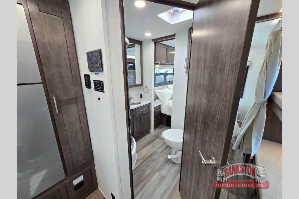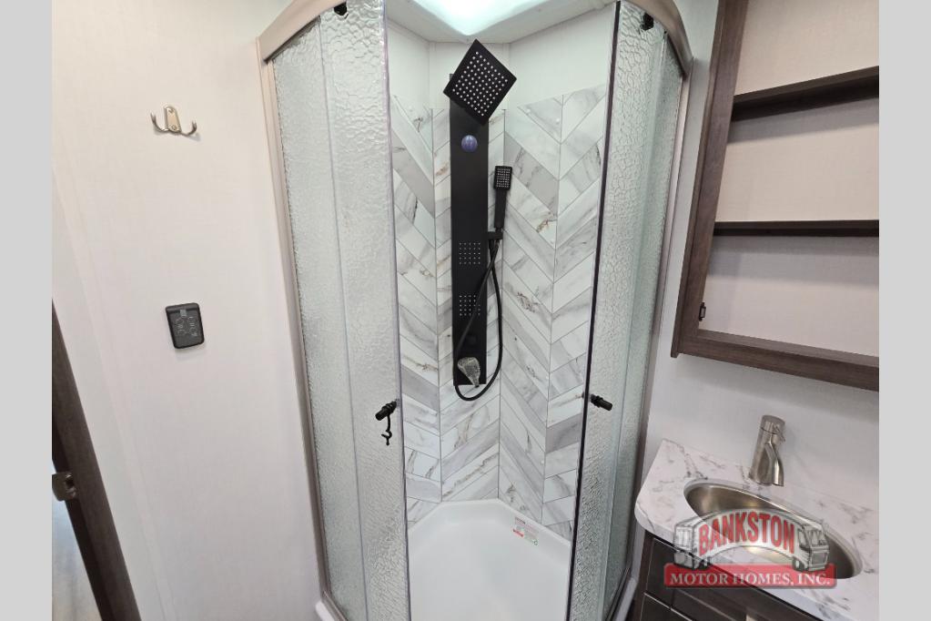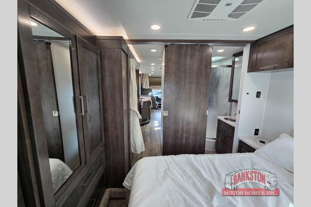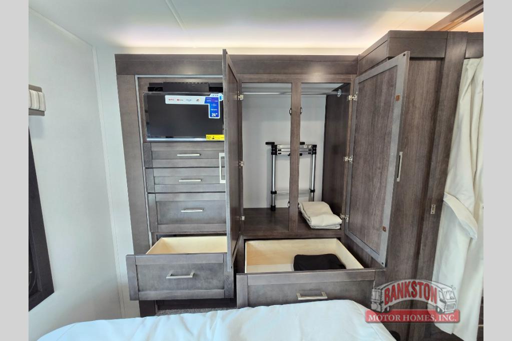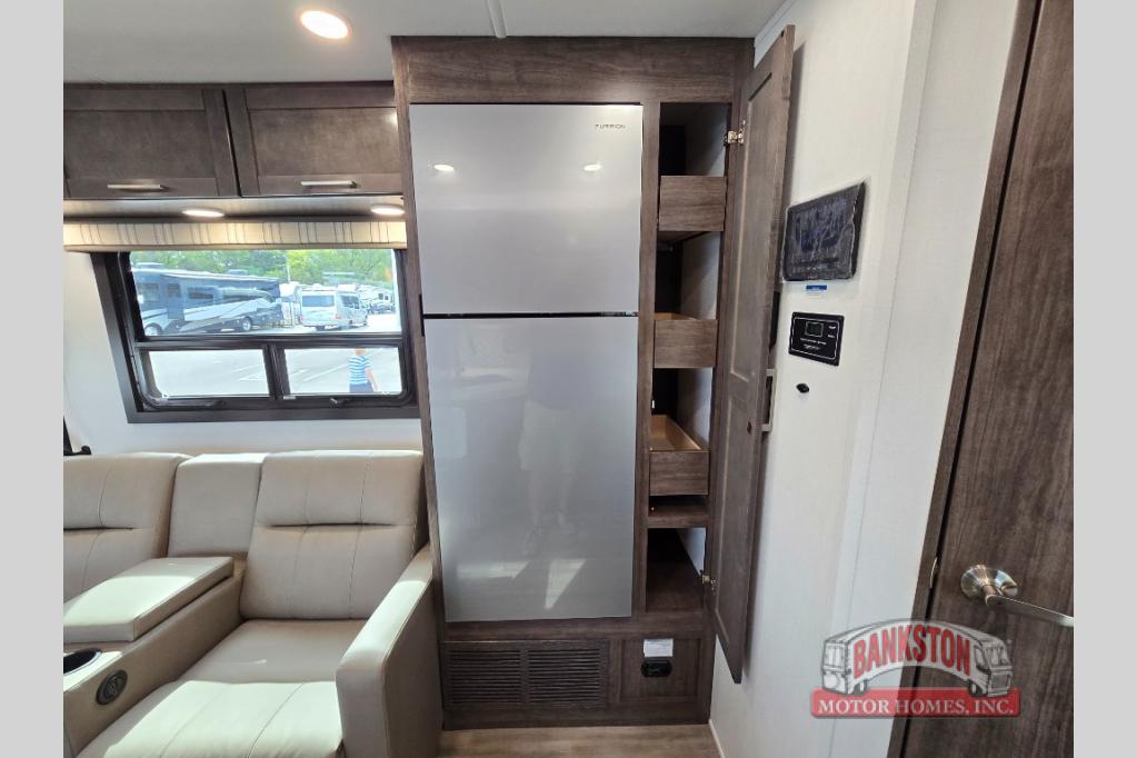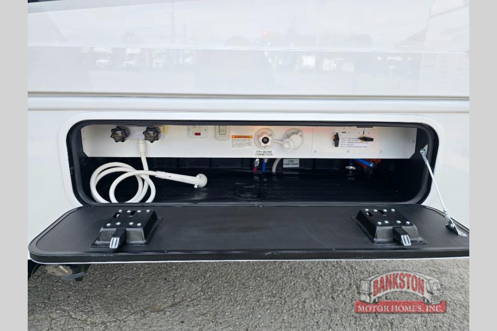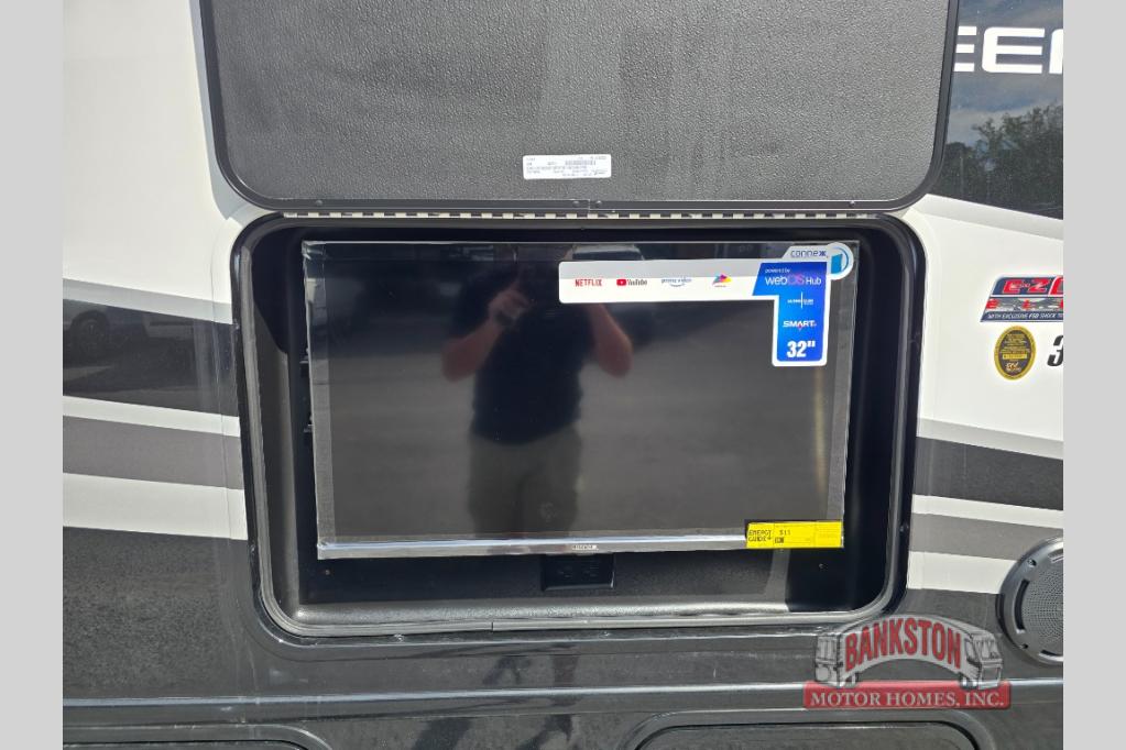 The whole family can travel together in this motorhome! The kiddos can sleep on the set of bunk beds with tablet holders and you can sleep on the 60" x 74" queen bed in the rear private bedroom. Everyone can easily access the dual entry bathroom to freshen up in the 32" radius shower each morning. Cook up delicious meals on the Furrion all-in-one cooktop, then head to the booth dinette which can also transform into an extra sleeping space. You can take an afternoon nap on the sofa or head outdoors to watch the big game at the exterior LED HD Smart TV underneath the 18' electric awning with LED lights to highlight the good times!