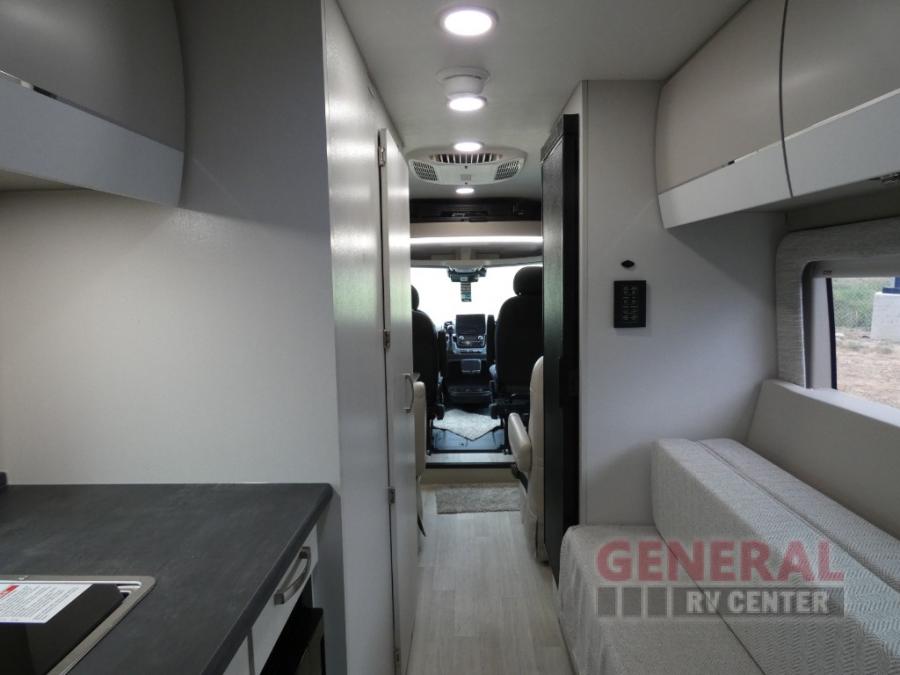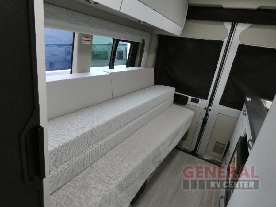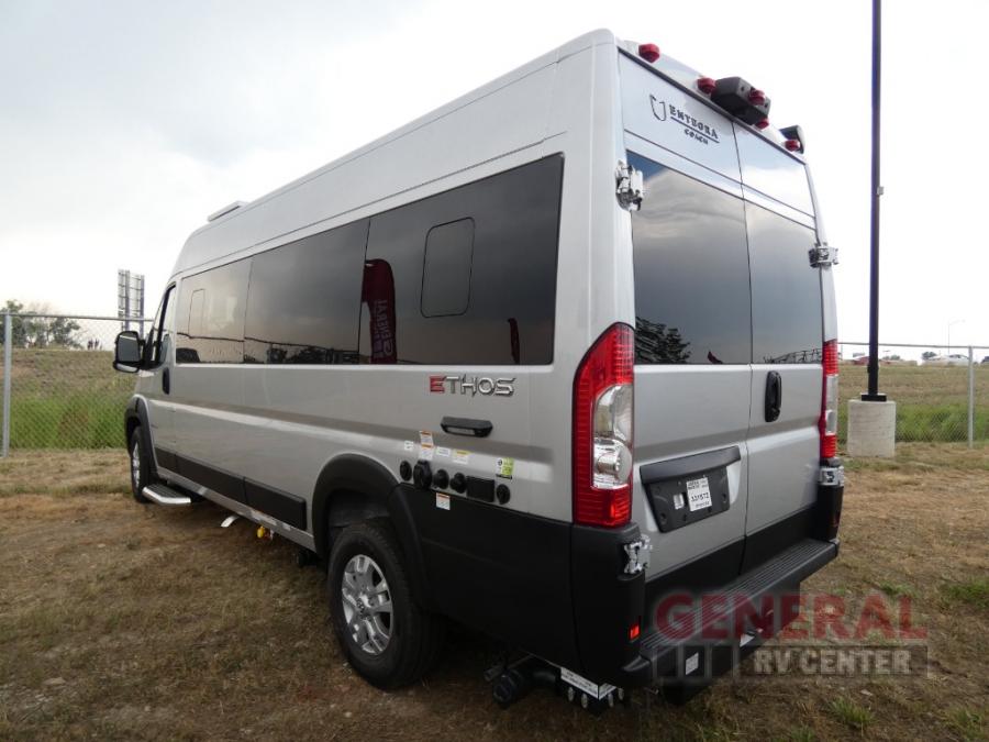 With any Ethos Class B gas motorhome by Entegra you will find helpful technology features, luxury amenities, and a smooth drive thanks to the E-Z Drive system. The 3.6L V6 24V VVT 276HP engine will power your trips near and far, plus there is an 2800-watt gas generator on board and a 1,000-watt inverter. Each model also includes a Truma Combi Eco Plus water heater and furnace, a 13,500 BTU A/C, a water filtration system, plus many more convenient systems. A Uconnect 5 NAV infotainment center comes standard, along with a backup camera and a cab area privacy shade. You'll be traveling in luxury with residential vinyl flooring, European-style high-gloss cabinetry, a soft-touch vinyl celling, and pressed countertops. Start a new adventure today in an Ethos Class B gas motorhome today!