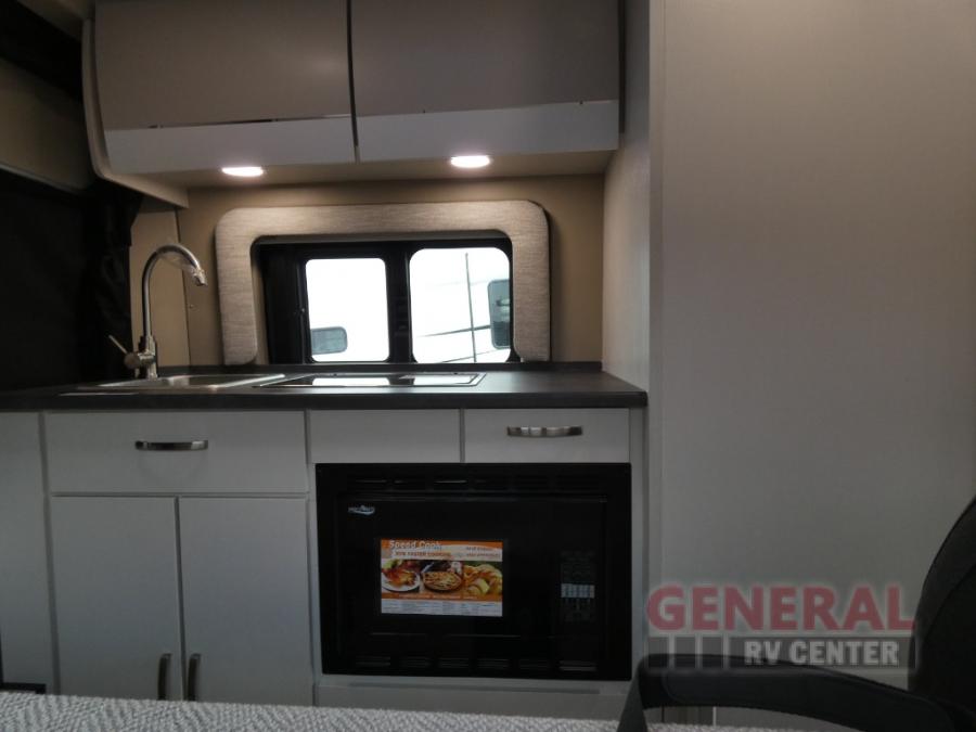 Enjoy day trips with friends or overnight stays at your favorite campground with your honey in this cozy motorhome. You will find swivel captain seats, plus two additional cab bucket seats for ride-along friends. The sofa in the back can convert to a 48" x 76" extended bed when you need a rest, and there is a cab TV to watch a movie. The kitchen is equipped with everything you need to prepare meals each day, including a stainless steel sink, a convection microwave, and a 5.3 DC refrigerator for perishables. This model includes a convenient wet bath with a medicine cabinet with a mirror, a powered roof vent, plus an Aqua View Showermiser water management system you are sure to appreciate.