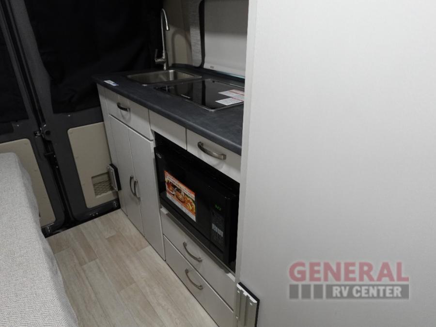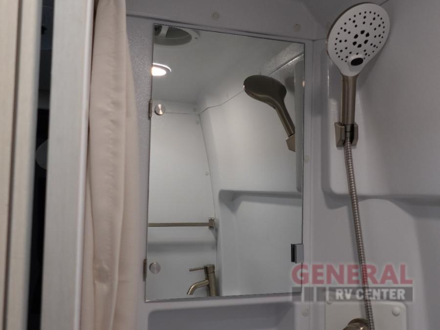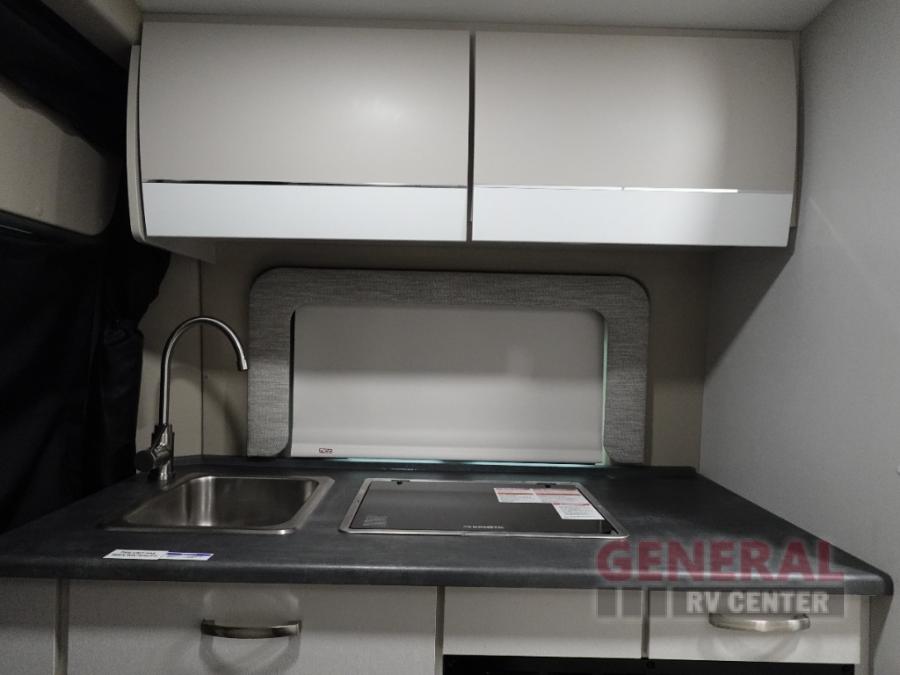 Enjoy day trips with friends or overnight stays at your favorite campground with your honey in this cozy motorhome. You will find swivel captain seats, plus two additional cab bucket seats for ride-along friends. The sofa in the back can convert to a 48" x 76" extended bed when you need a rest, and there is a cab TV to watch a movie. The kitchen is equipped with everything you need to prepare meals each day, including a stainless steel sink, a convection microwave, and a 5.3 DC refrigerator for perishables. This model includes a convenient wet bath with a medicine cabinet with a mirror, a powered roof vent, plus an Aqua View Showermiser water management system you are sure to appreciate.