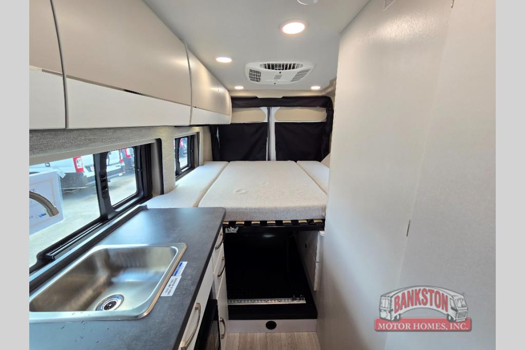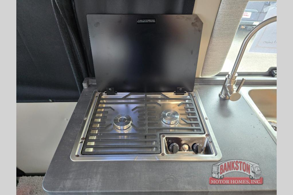 This versatile coach is perfect for two with the option to sleep more when you choose the optional pop top! You can also choose an optional workstation in place of the bench seat up front if you need to get some work done. The wet bath will let you freshen up each day, and the kitchen includes a convection microwave and two burner gas cooktop to cook meals. You'll find a Murphy bed in the back with under-floor storage and pull-out trays, perfect for all your hiking gear! There is also a bench seat as well, along with an overhead cabinet for even more storage.