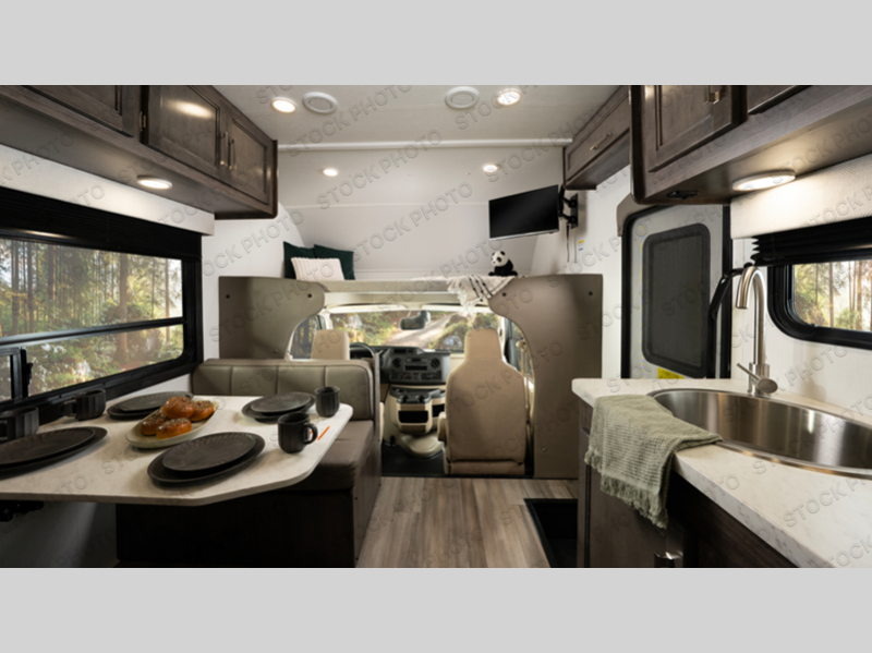 Make your trips complete in this coach that can sleep four to five each night. There is a cab-over bunk with a 750 lb. capacity for guests, and an RV queen bed slide out in the rear corner bedroom. The booth dinette can be used to dine at, play games, and even sleep an additional guest or two little ones. A two-burner cooktop comes standard in the kitchen, along with a convection microwave, a stainless-steel sink, and a 10-cu. ft. refrigerator. You will also appreciate having a full bath on board, and the 13' electric awning outside will provide a place to relax with a cold drink!